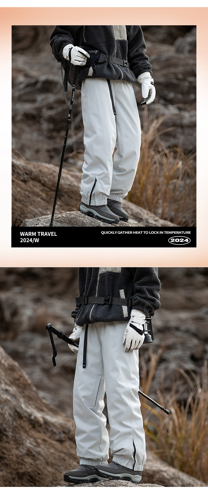 Модные зимние брюки с двумя молниями для мужчин и женщин, утолщенные, ветрозащитные, для катания на лыжах, теплые и мягкие