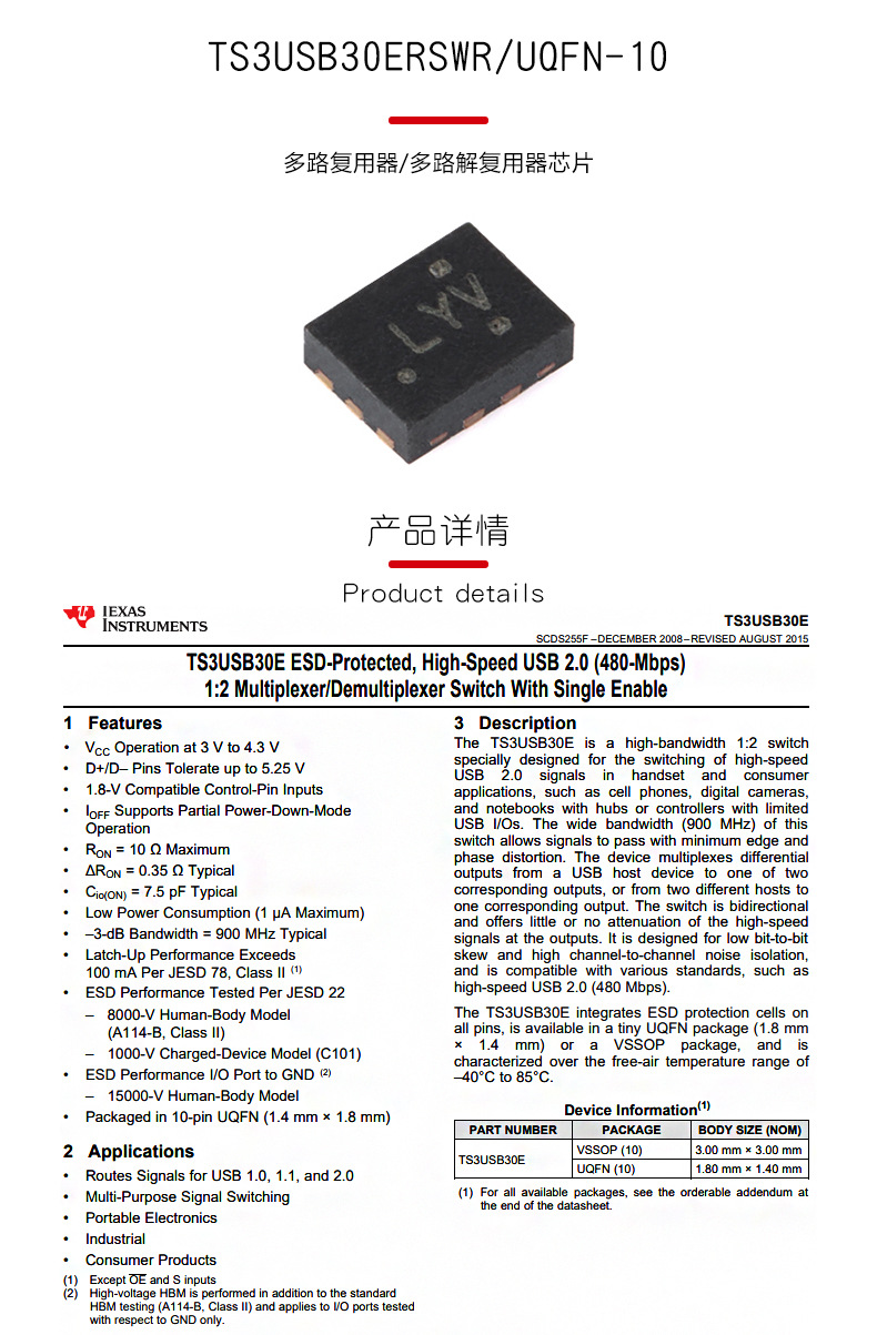 Оригинальный Ts3Usb30Erswr Uqfn-10 чип мультиплексора/демультиплексора