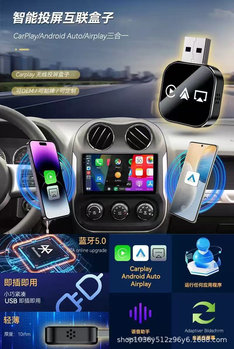 Подходит для беспроводной коробки Apple Carplay, зеркальное отображение 3в1, умная коробка Android Autocarplay