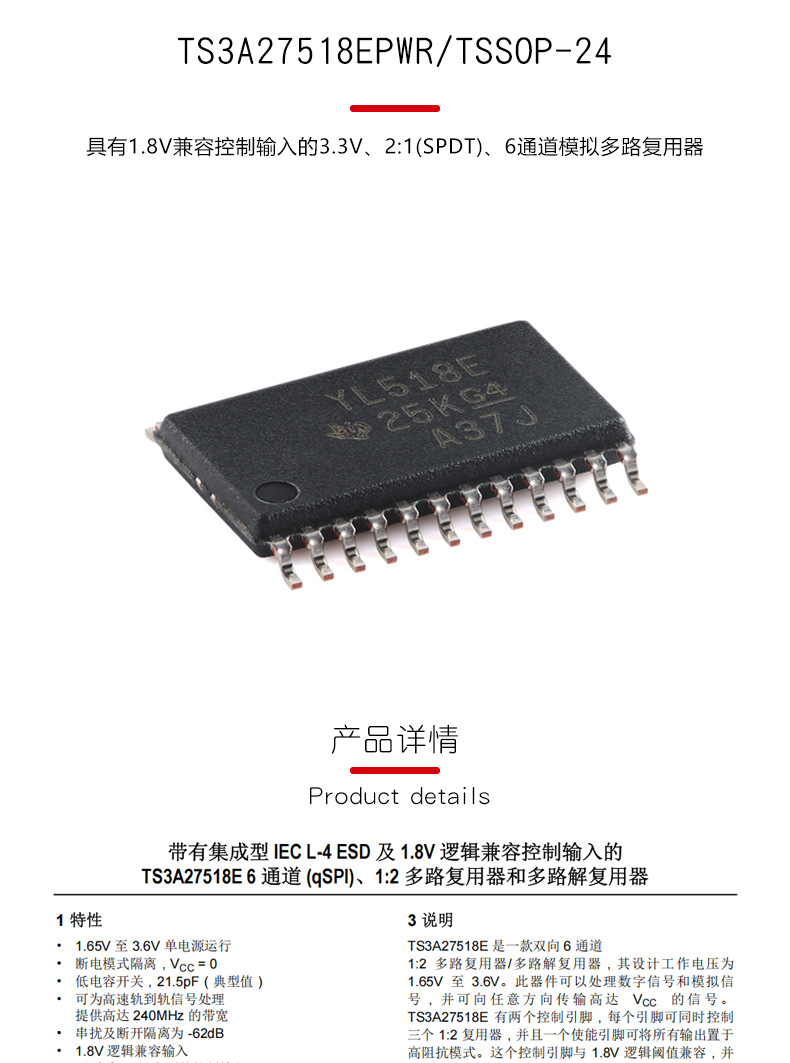 Оригинальный Ts3A27518Epwr Tssop-24 с управлением 1.8V, аналоговый мультиплексор