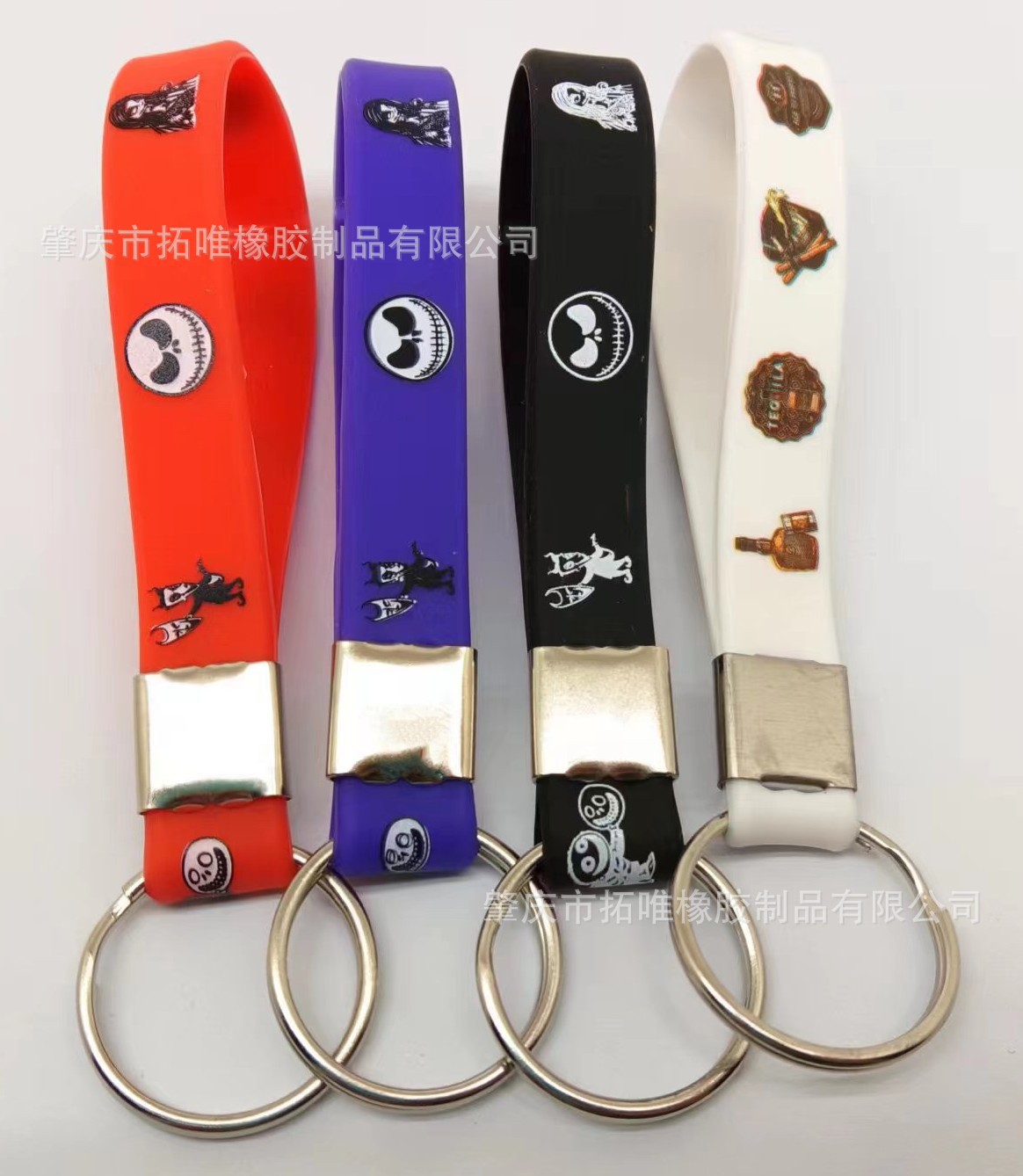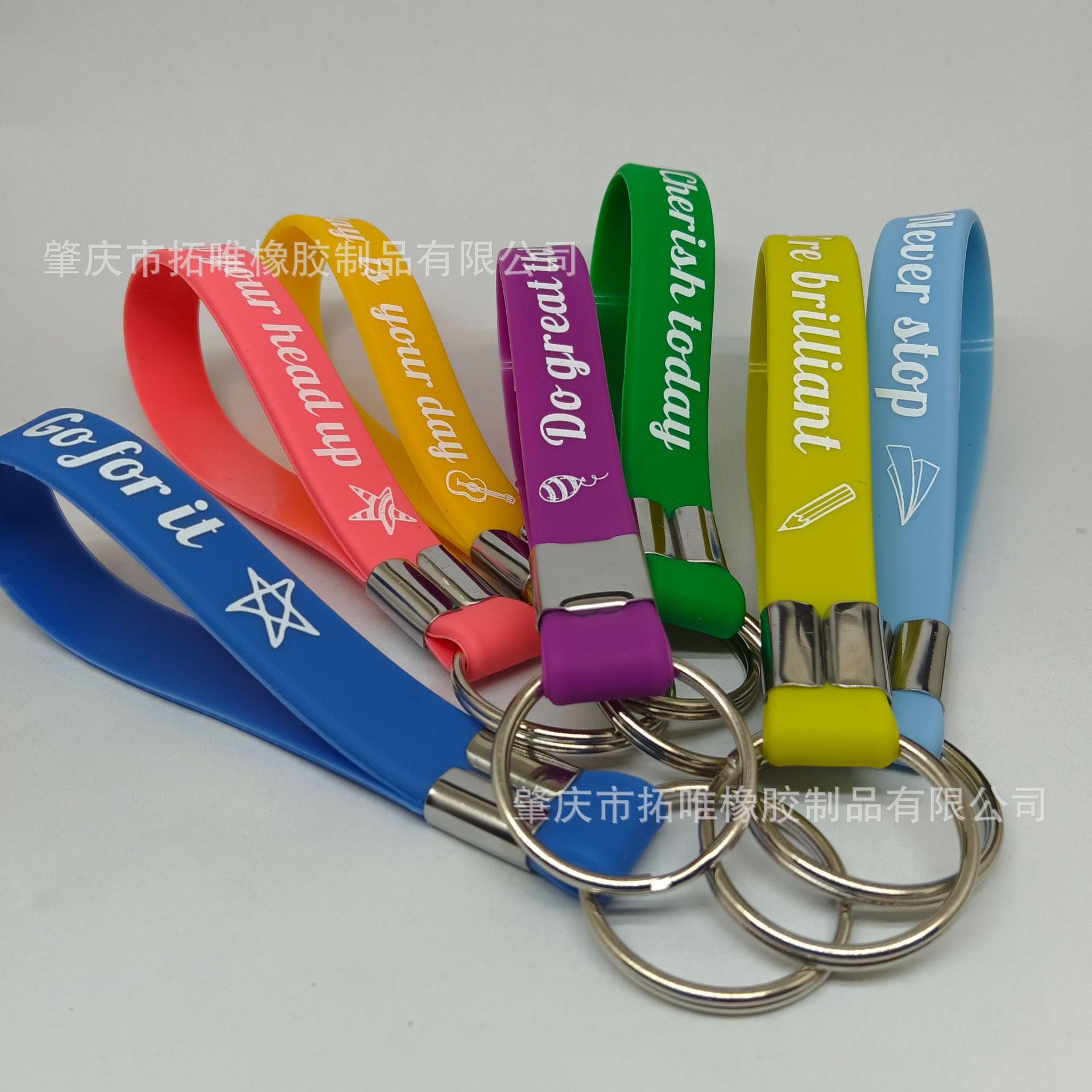 Оптовая поставка силиконовых брелоков с печатью и цветным логотипом, регулируемые силиконовые браслеты и кольца для ключей