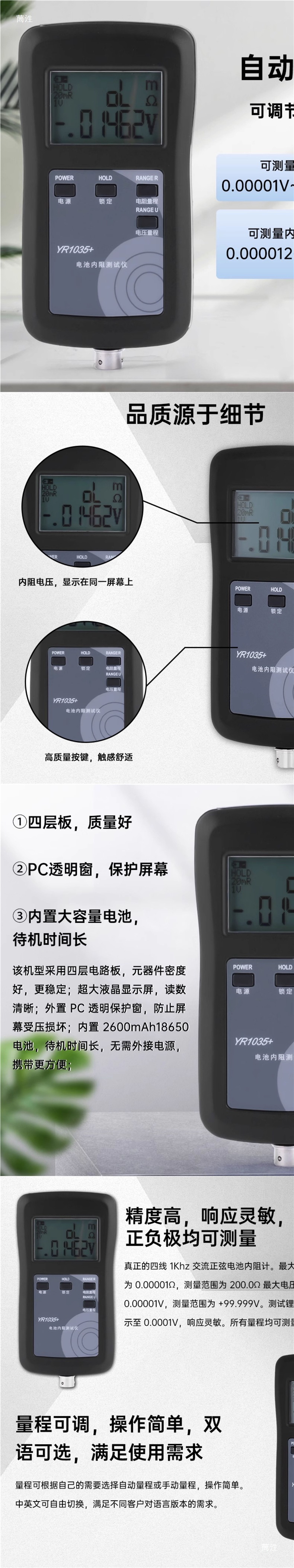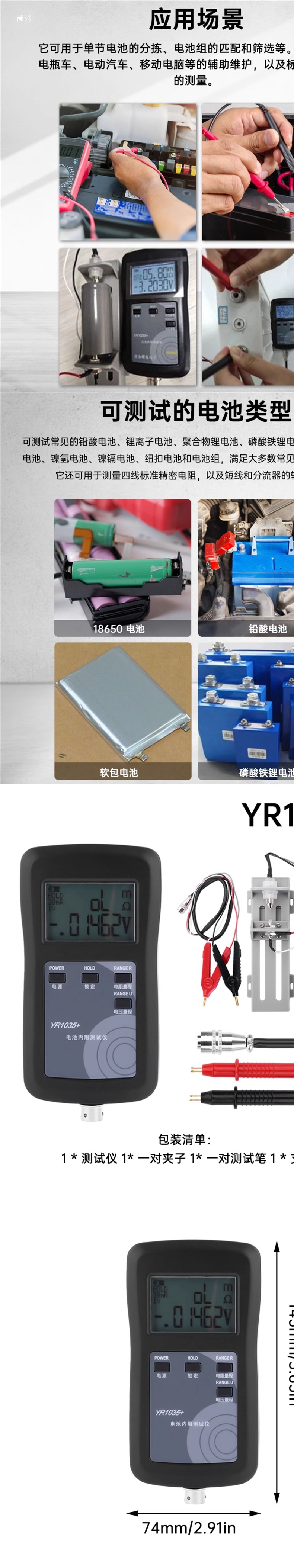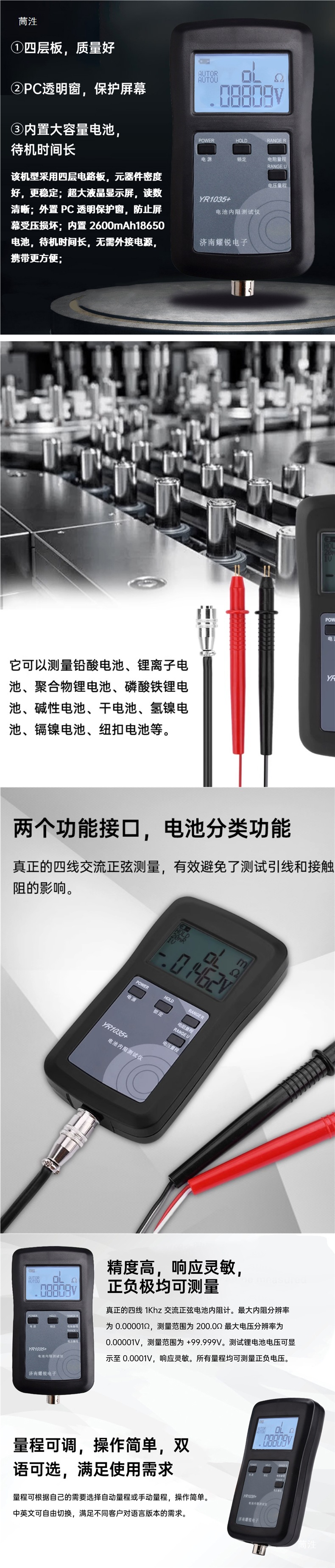 Четырехпроводной Yr1035, DC 0-100V, высокоточный тестер внутреннего сопротивления литиевой батареи, встроенный набор батарей 0~200Ω