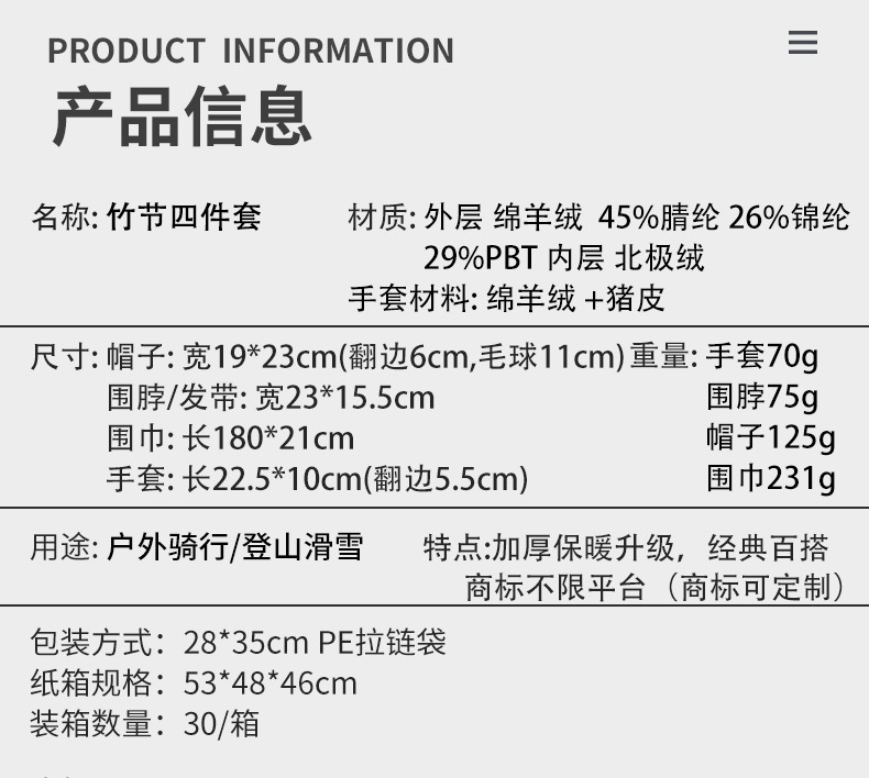 Комбинированный метод Scarf, hat and gloves three-piece set