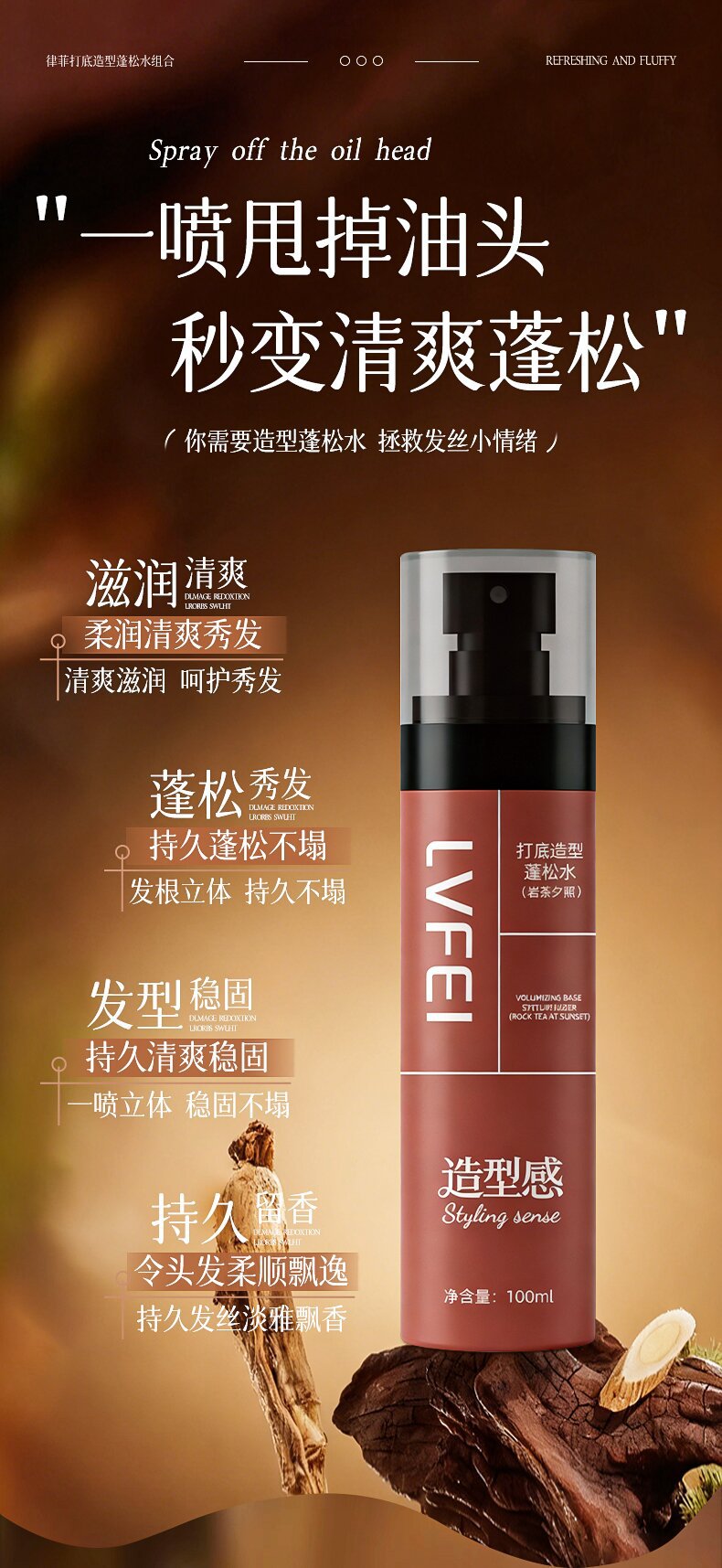 Lufei базовый спрей для укладки без смывания, легкий и долговременный, придает объем волосам и пышность