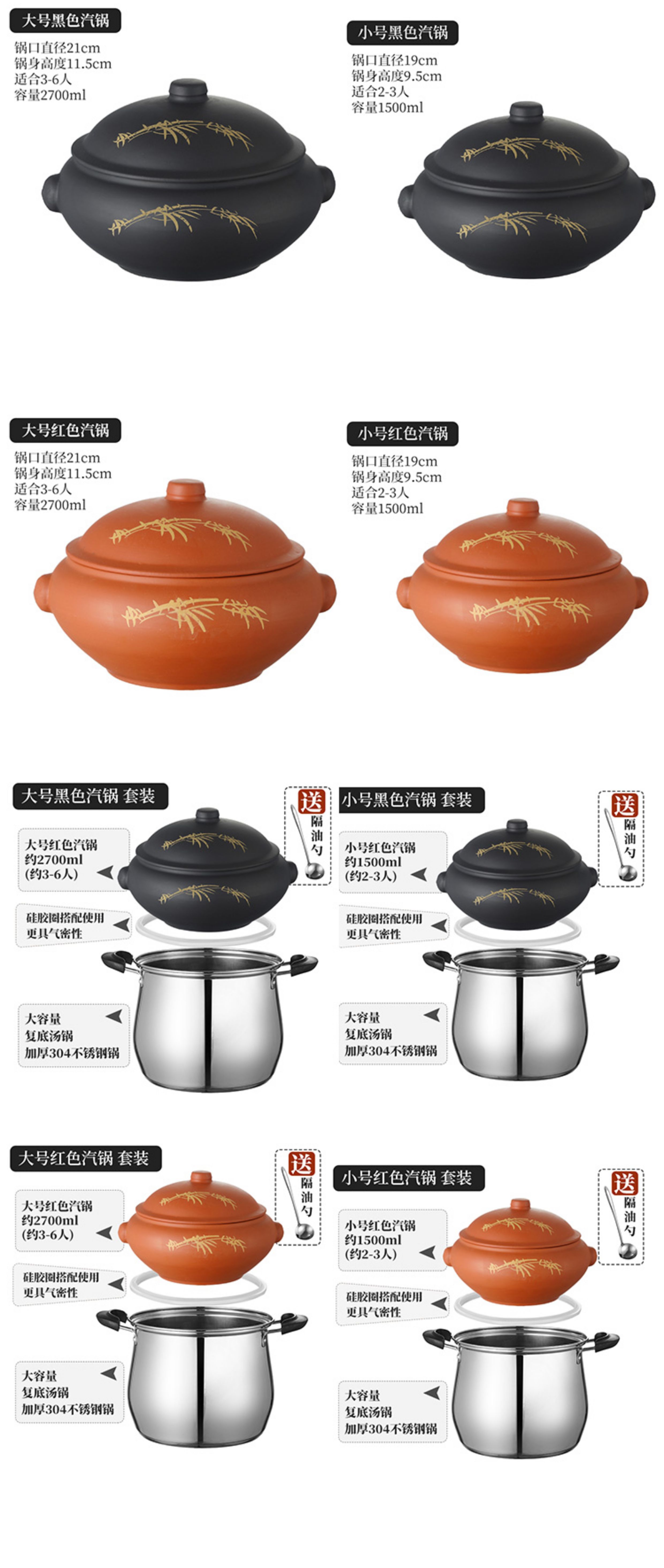 ![]() | Default item | Large red steam pot set [free grease trap] | ¥133.35 / ≈ 1 606 ₽ | 400 | 6147362598836 | |