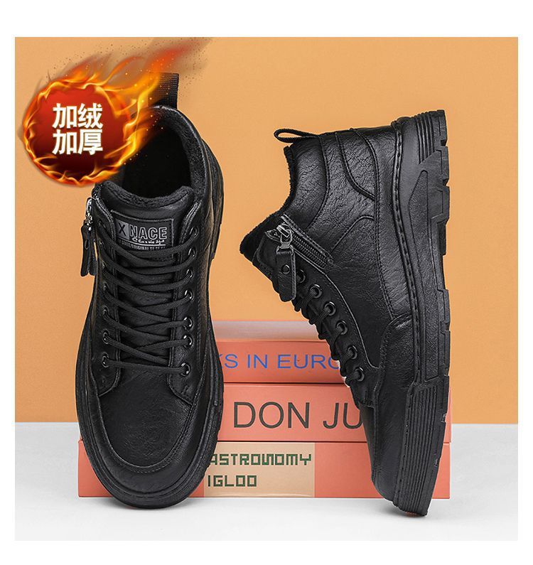 Мужские зимние британские стильные ретро рабочие высокие ботинки Мартин с утеплителем, утолщенные для тепла, уличные нескользящие хлопковые обувь