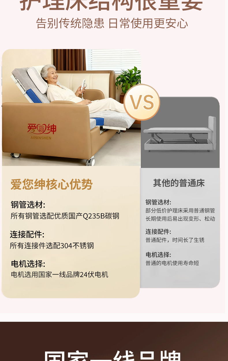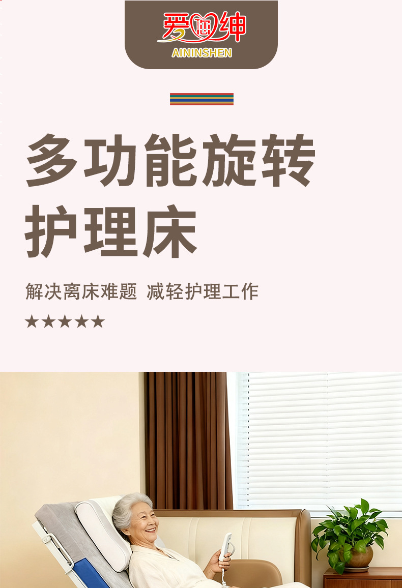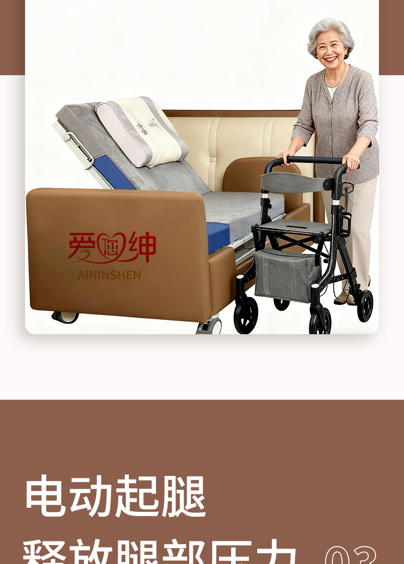 Прямые продажи электрической медсестринской кровати Aiyoushen, которая может поднимать спинку, поднимать ноги, вращать и перемещать пациента вверх и вниз по кровати, сделана из массива дерева, подходит для пожилых