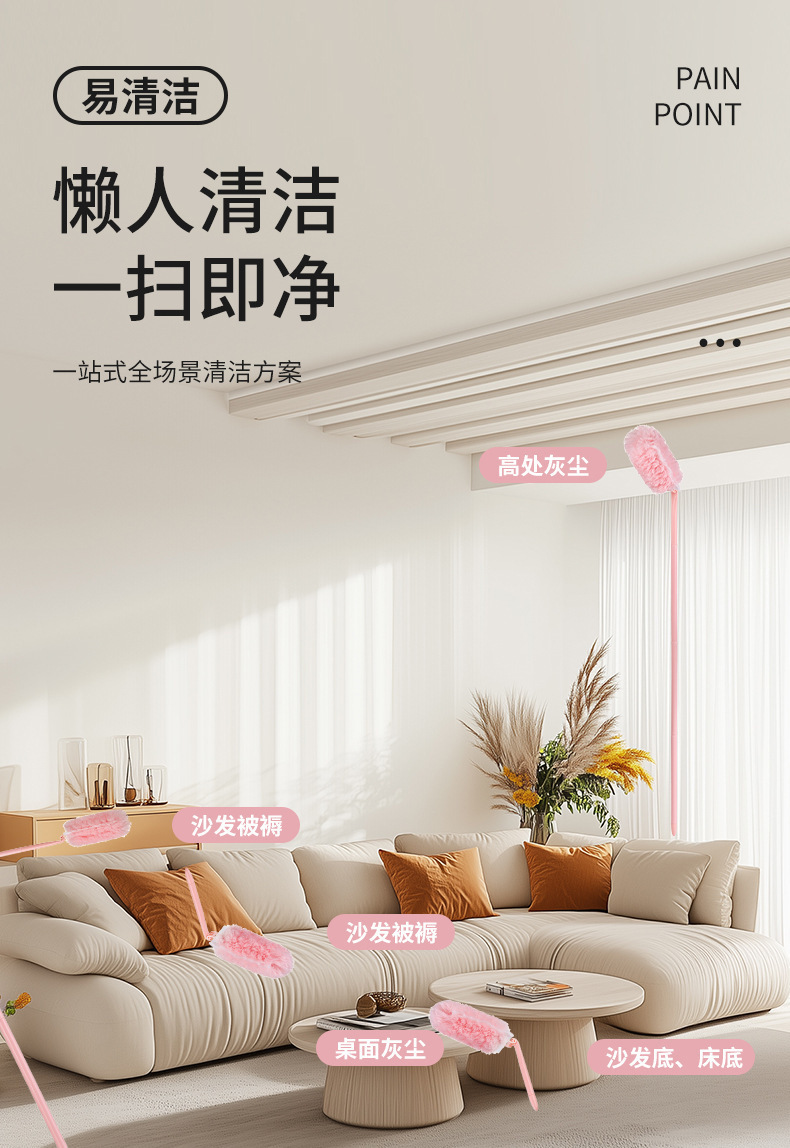 Чистящая щетка с удлиненной ручкой, выдвижная, электростатическое удаление пыли, перьевая щетка, домашняя щетка, инструмент для ежедневной уборки на кухне и в ванной