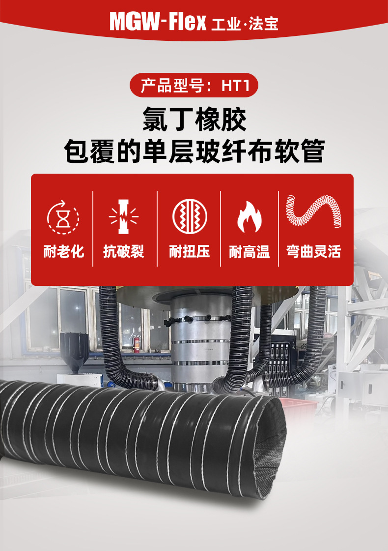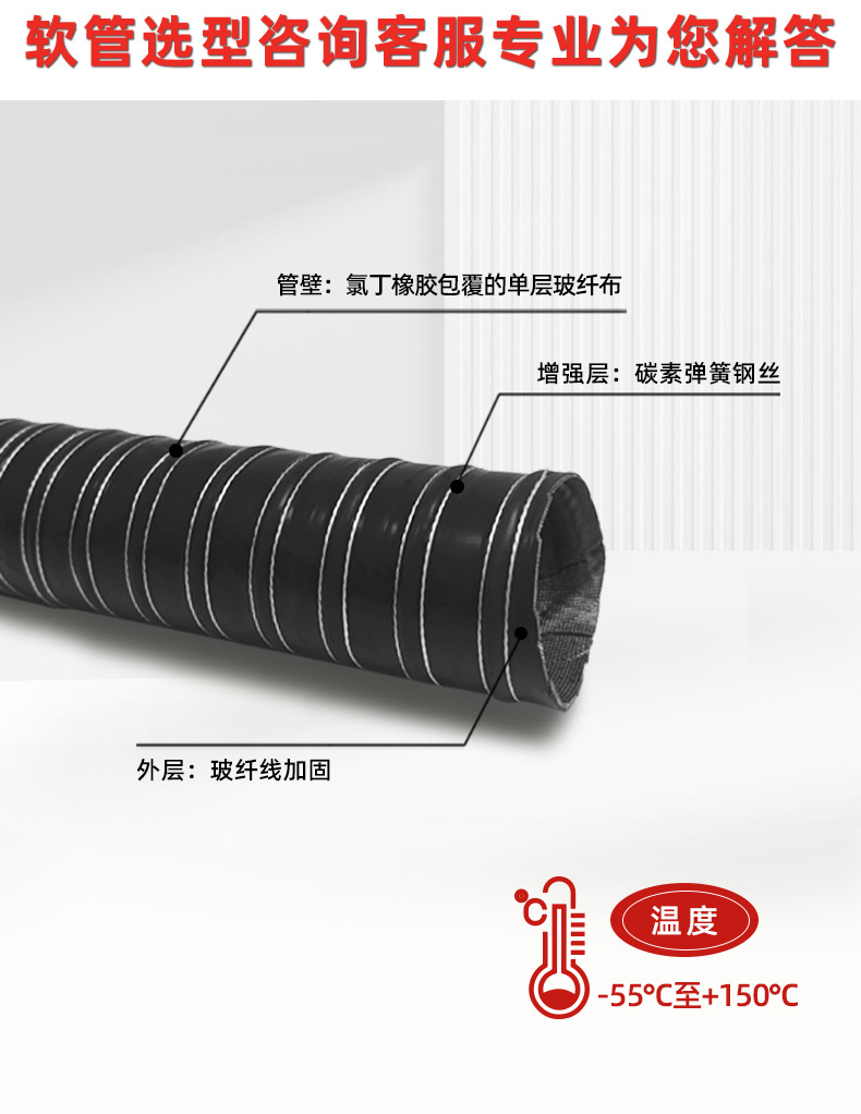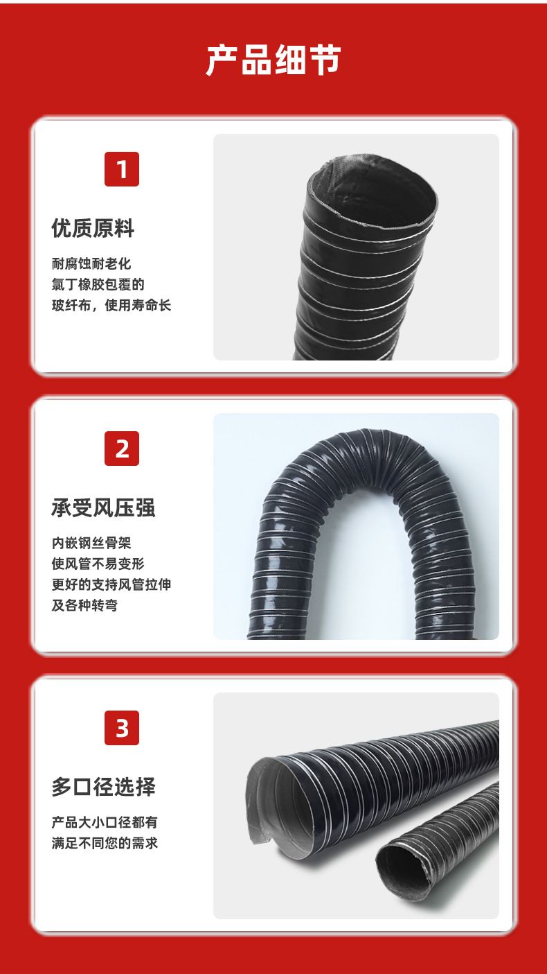 Вентиляционная труба из неопрена Baofang Industrial, устойчивая к высоким температурам, кислотам и щелочам, гибкая вытяжная труба