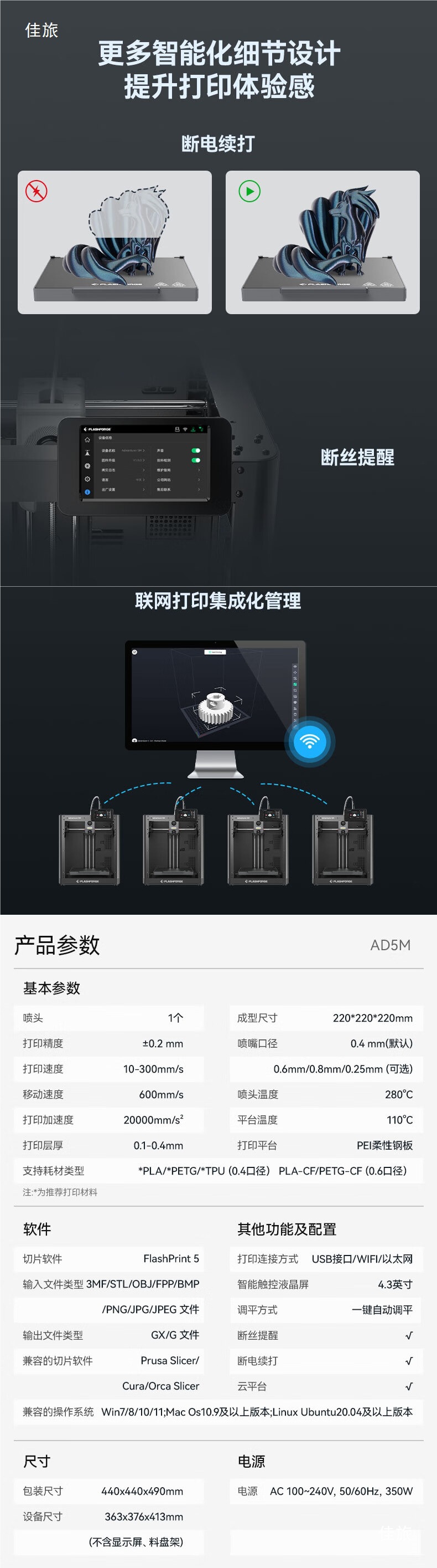 3D принтер Ad5M, высокоскоростной, большой размер, полностью автоматическая настройка, настольный FDM