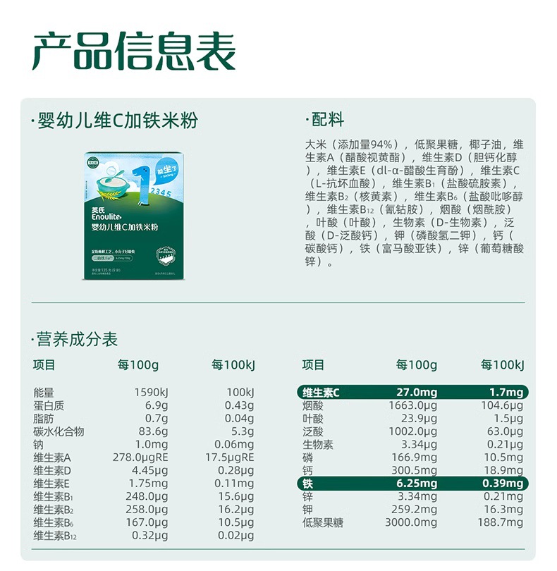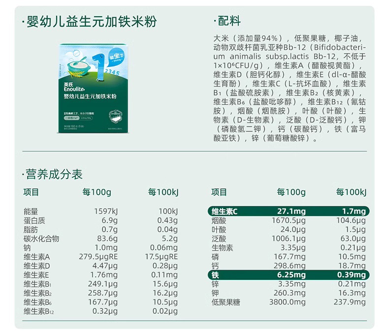 Ying рисовая каша в коробке 180г/упаковка (9 маленьких пакетов), детская питательная рисовая каша с высоким содержанием железа для детей от 6 месяцев, кальций, железо, цинк