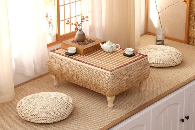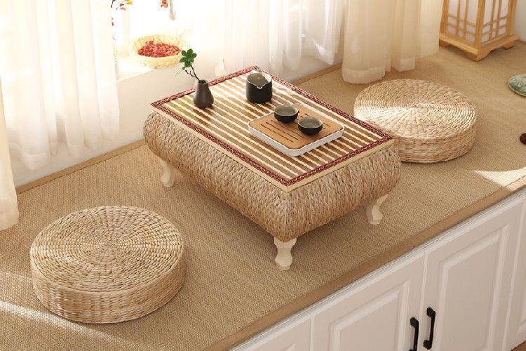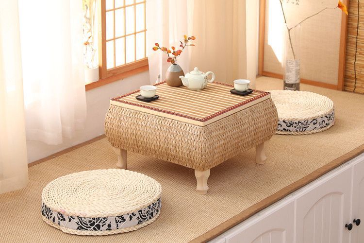 Кофейный столик из ротанга в японском стиле, стол для хранения из массива дерева, маленький стол для эркера, низкий стол для татами на подоконнике