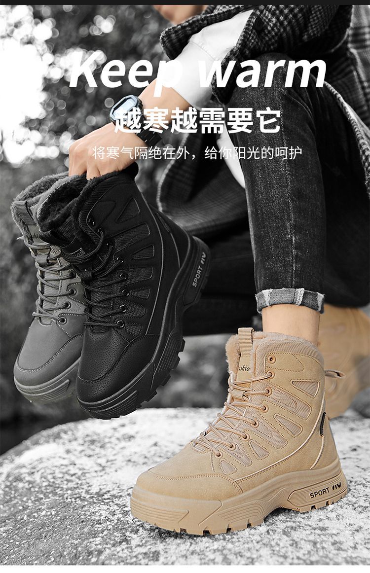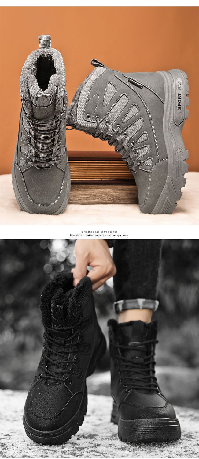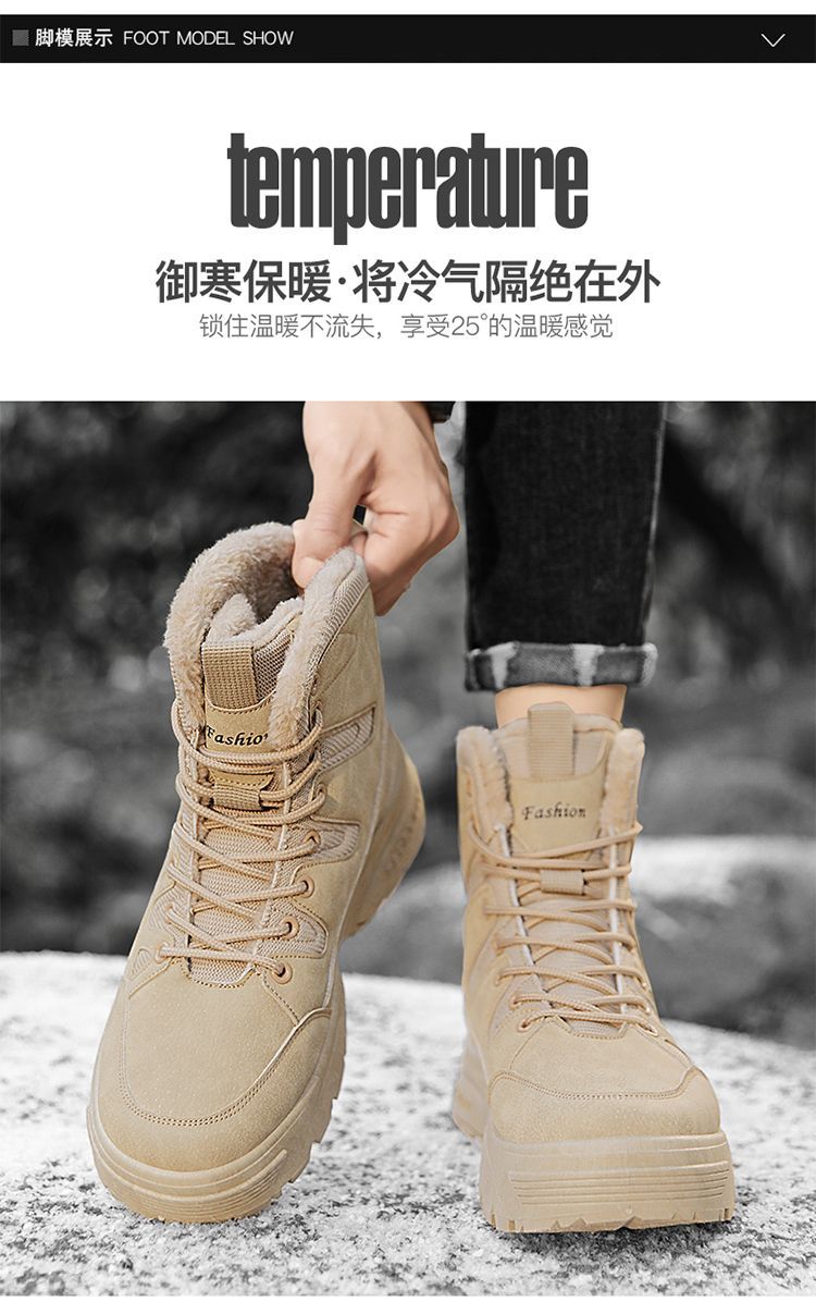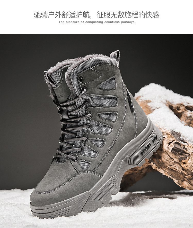 Снегоступы для мужчин новые зимние с увеличением высоты утепленные флисом теплые и холодостойкие высокие хлопковые обувь водонепроницаемая и нескользящая