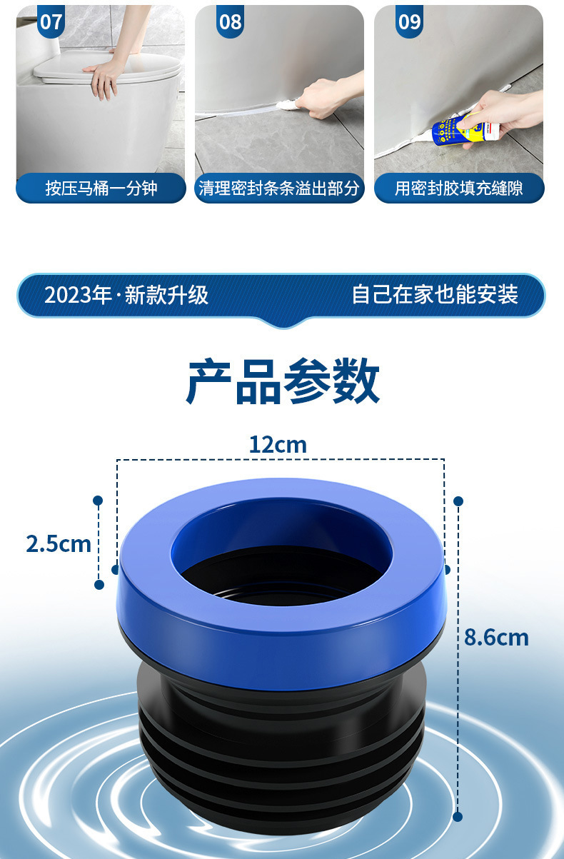 [Улучшенная модель] Уплотнительное кольцо для унитаза, универсальная резиновая прокладка для дренажа