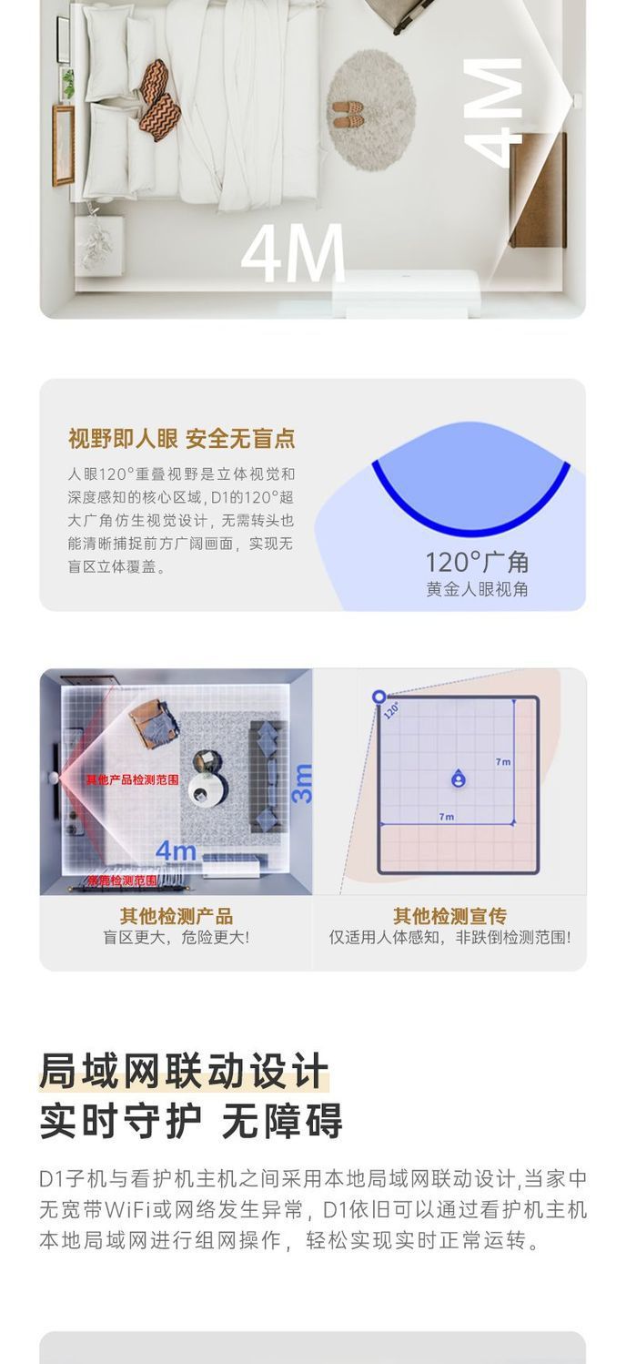 Qinlu D1 устройство для ухода за пожилыми людьми внутренняя домашняя камера с голосовым вызовом удаленного мониторинга обнаружения падений радаром