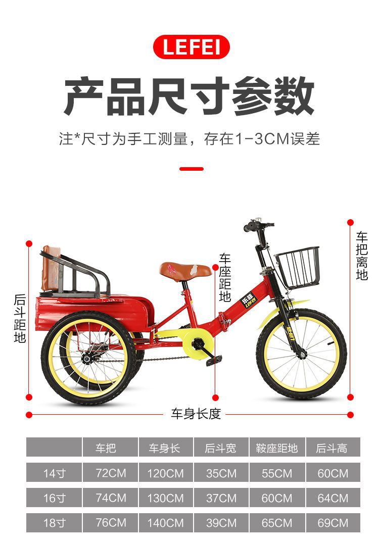 Детское трехколесное транспортное средство для перевозки людей и грузов с ведром, легкий складной велосипед 14 дюймов, 16 дюймов, 18 дюймов для мальчиков и девочек