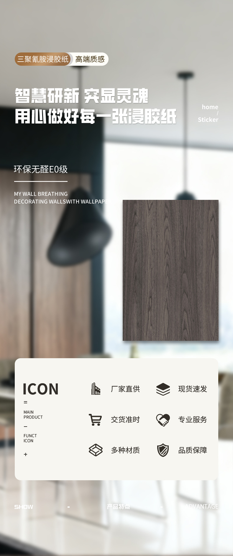 Характеристика Multifunctionality: anti-virus, anti-bacterial and anti-mildew, aldehyde-free, deodorizing and odor-eliminating, insect-proof, high stain resistance, abrasion resistant, ultra-low aldehyde, etc. rich colors and novel styles!