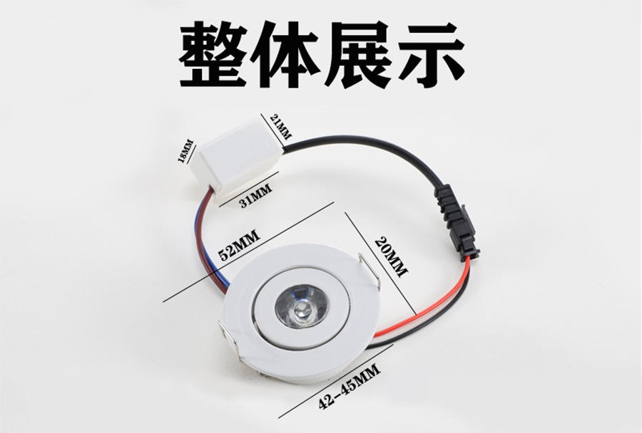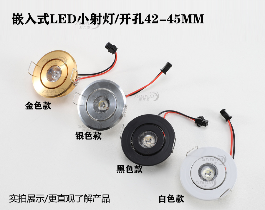 Светодиодный маленький встраиваемый прожектор с отверстием 45мм, 4.5см, мини 1W, регулируемый для витрины, маленький даунлайт для винного шкафа