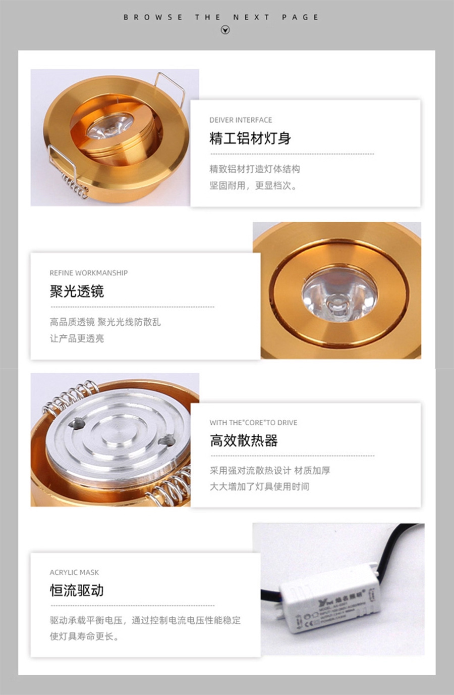 📦 | Gold model; opening 4.5cm ;1w; warm light (3000k) | ¥7.8 / ≈ 94 ₽ | 9990 | 5980239864375 | |