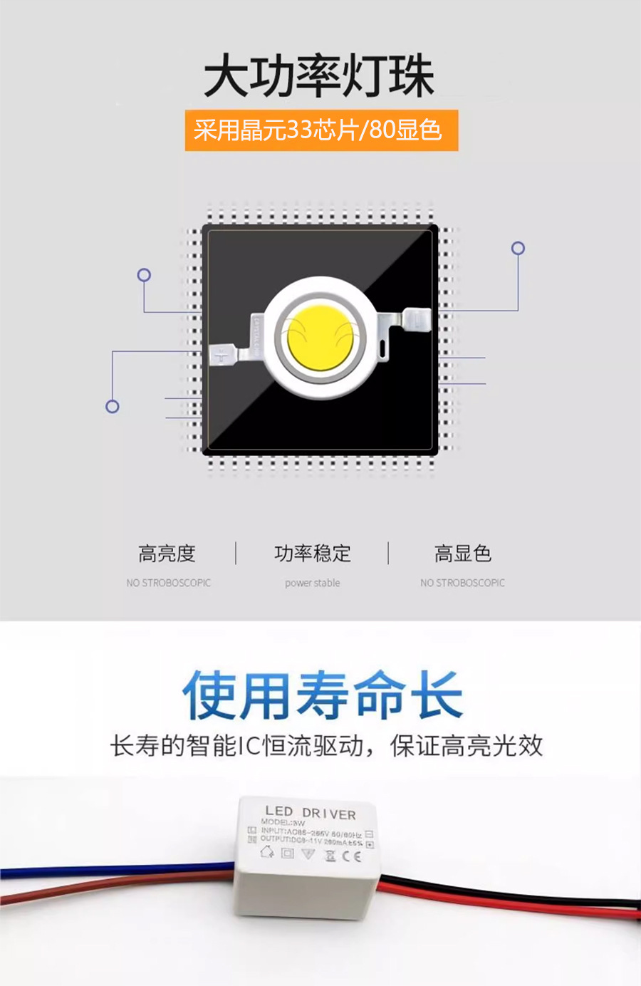 📦 | White model; opening 4.5cm ;1w; warm light (3000k) | ¥7.5 / ≈ 90 ₽ | 10000 | 5980239864366 | |