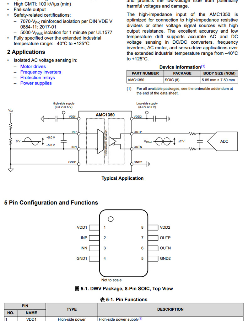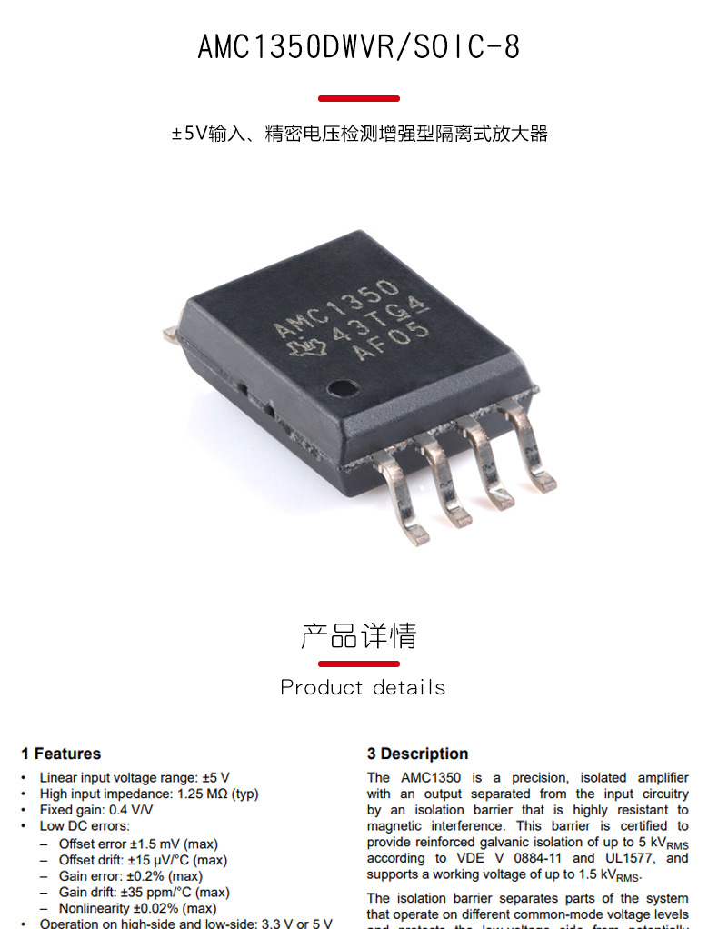 Оригинальный Amc1350Dwvr Soic-8±5В вход точного обнаружения напряжения усилитель с повышенной изоляцией