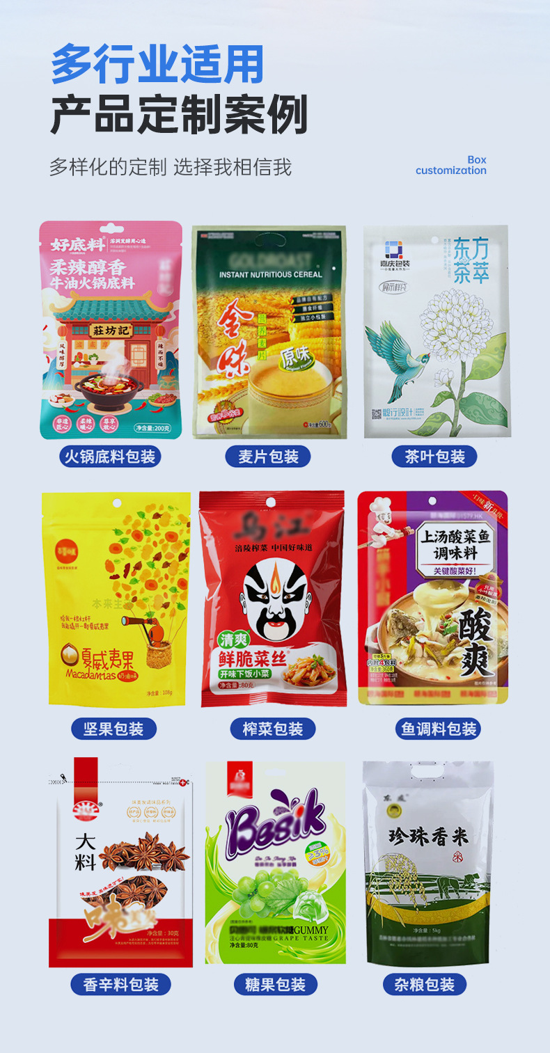 Модель Customized middle-sealed bags, customized eight-side sealed stand-up bags, customized three-side sealed bags, customized zipper bags, ziplock bags, stand-up bags, aluminum foil bags, customized packaging bags, accordion bags