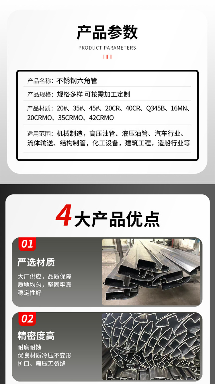 Шестигранная труба из нержавеющей стали 304, специальная труба из нержавеющей стали, бесшовная шестигранная труба для жидкостей с полированной поверхностью