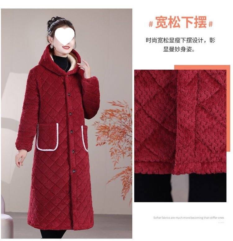 Зимняя женская рабочая одежда, домашняя одежда, тёплая хлопковая одежда, флисовая подкладка и утолщённая хлопковая одежда, повседневные верхние одежды, удлинённые халаты до колен