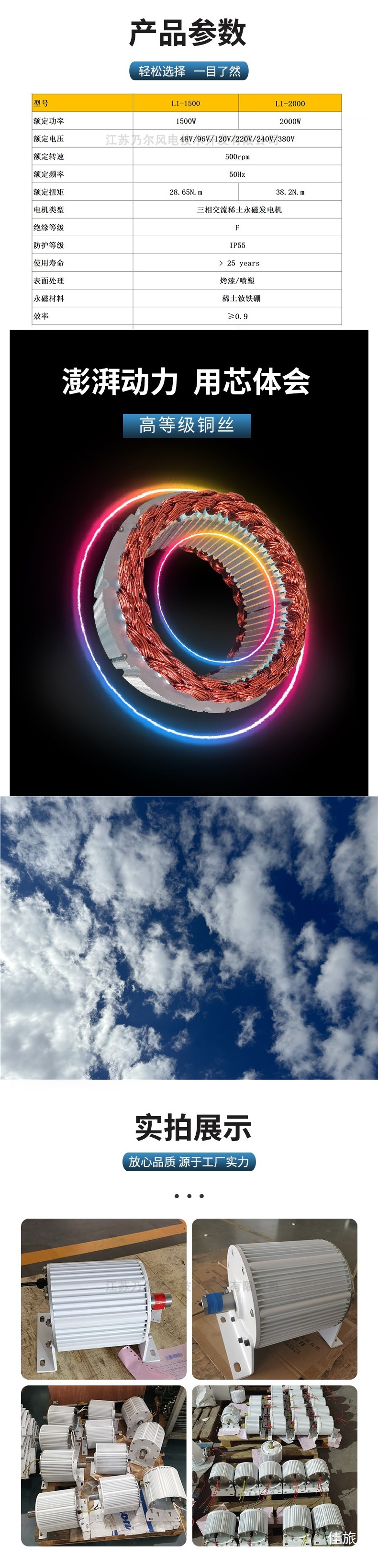 Трехфазный 1500Вт 500 об/мин 48В 220В 380В генератор постоянного тока на редкоземельных материалах