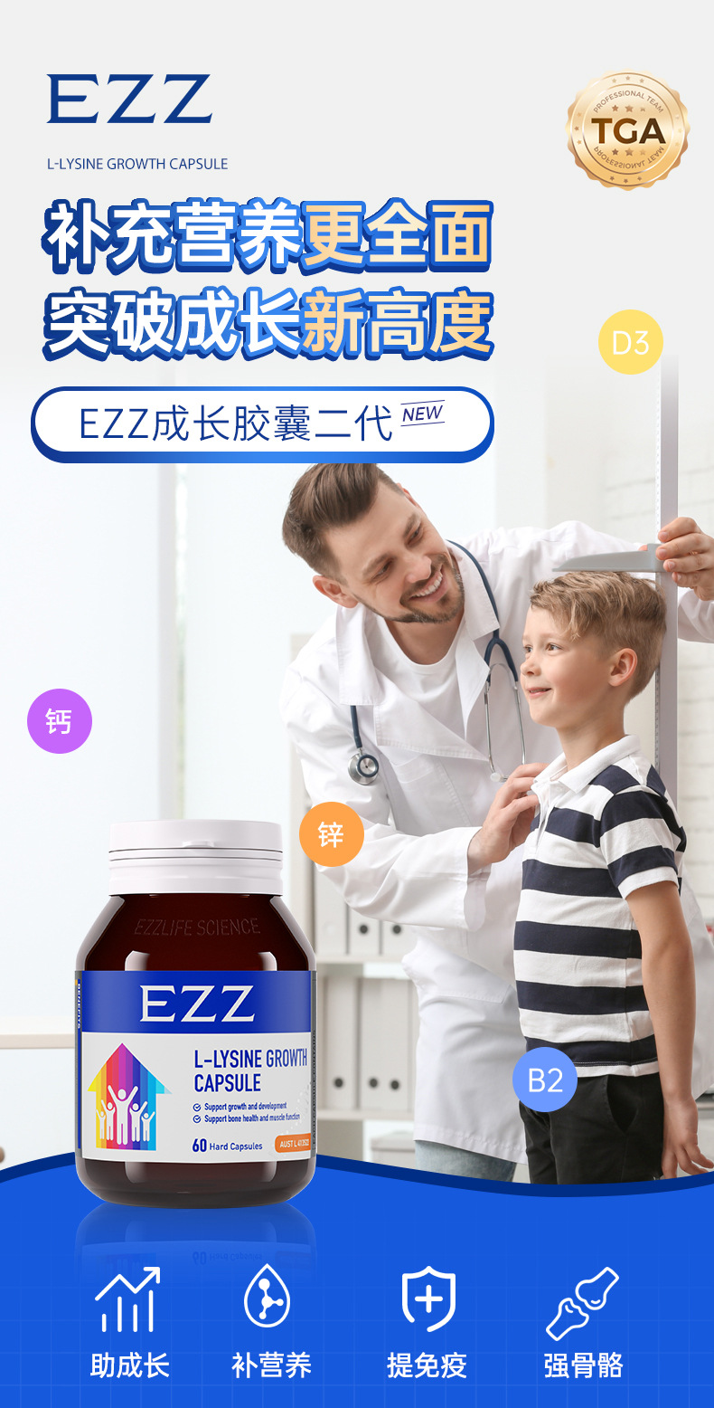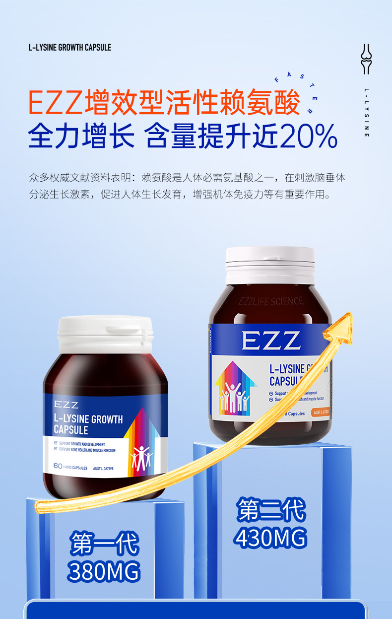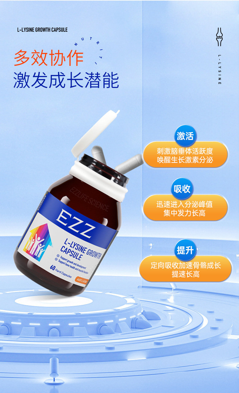 Австралийский импортированный Ezz рост пептид капсулы второго поколения высокая концентрация лизина 413 мг кальций магний цинк добавка для детей и подростков
