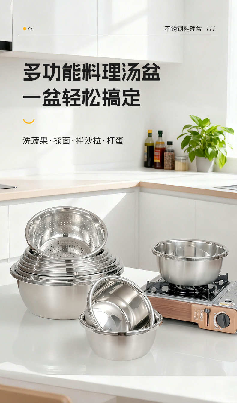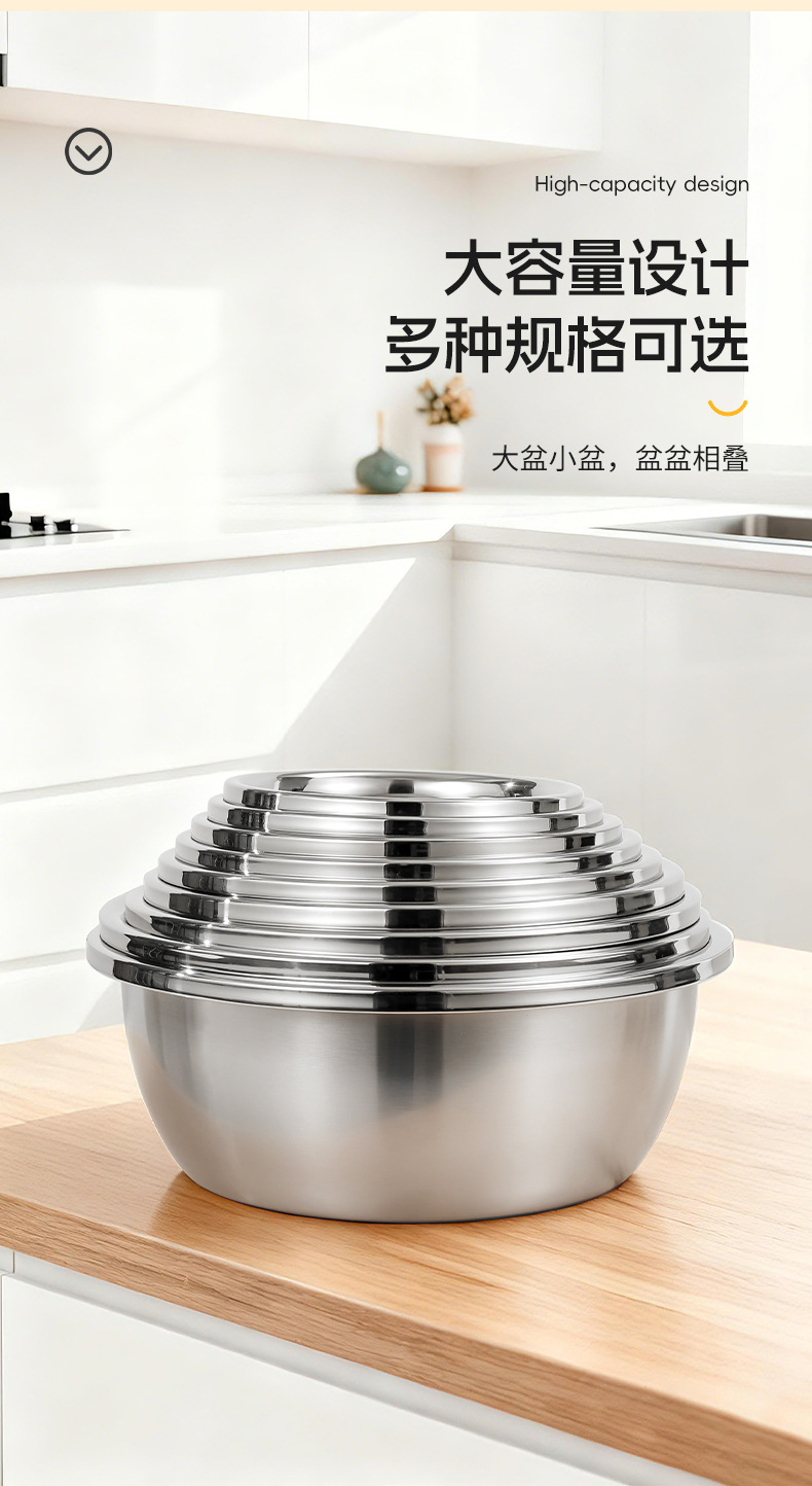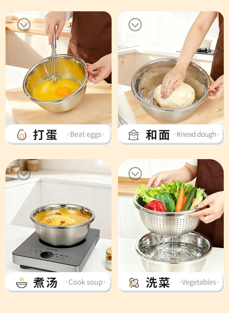 Нержавеющая сталь, европейский стиль, большая банка для приправ с обратным краем, чаша для мытья овощей, многофункциональная чаша, чаша для взбивания яиц, чаша для замешивания, кухонное сито для риса