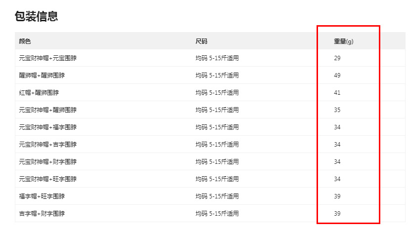 ![]() | Yuanbao god of wealth hat + lucky word scarf | One size fits all 2.5-7.5kg applicable | ¥11.0 / ≈ 133 ₽ | 3939 | 6146105262687 | |