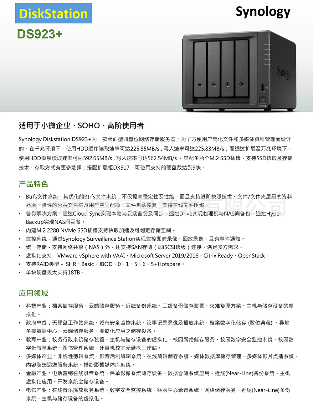 群晖Synology DS923+带4块16TB东芝企业盘之尾款