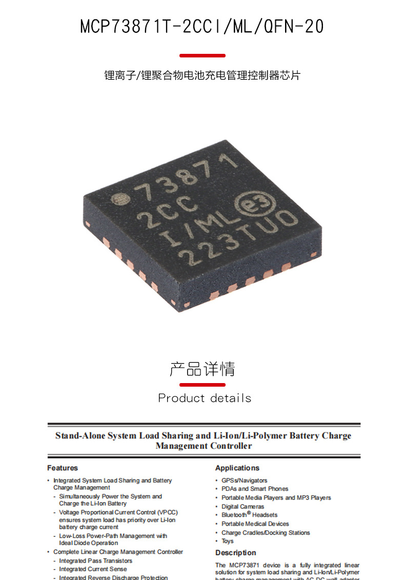 Mcp73871T-2Cci/Ml Qfn-20 контроллер управления зарядкой литий-ионных батарей