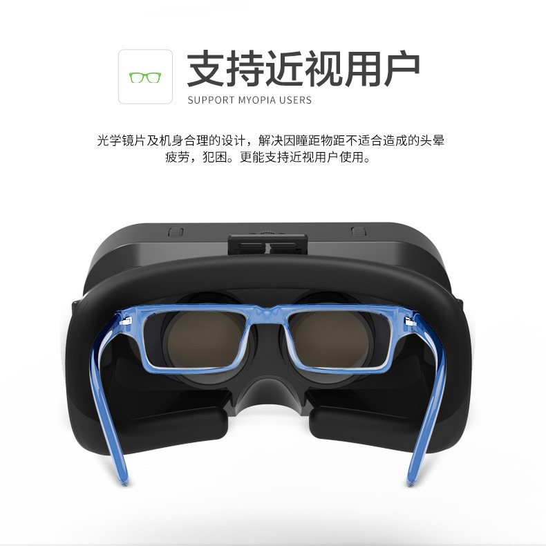 Список упаковки A pair of vr glasses, manual, and a piece of glasses cloth