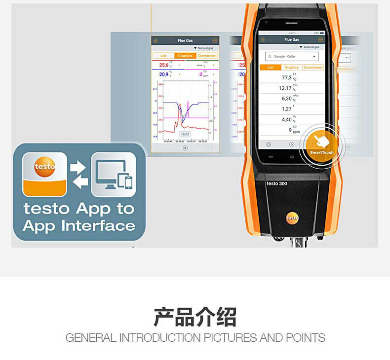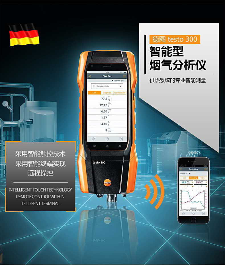 Универсальный анализатор дымовых газов Testo 300 Может измерять O2 и COH2 с концентрацией до 8000 Ppm