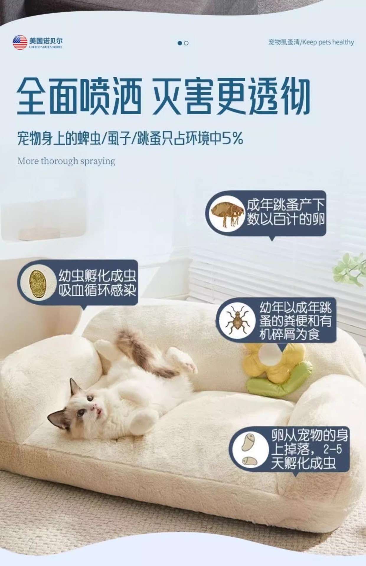 Средство от блох для домашних животных, специально для собак и кошек, убивает вшей и удаляет блох, нетоксичный инсектицидный спрей