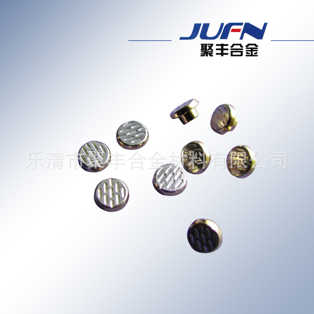 本公司专业生产整体、复合及各种异形铆钉型电触头,产品广泛适用于低压大容量交流接触器辅助;小容量交流接触器主触头;小型断路器和漏电保护开关辅助触头;直流汽车继电器、通讯继电器、信号继电器、电动工具开关、按钮、定时器、家用电器主触头等。