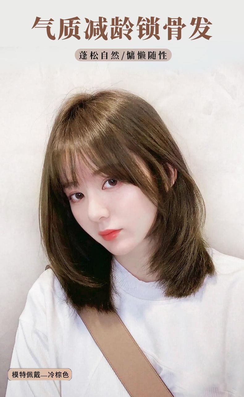 Парик для женщин с короткими волосами, натуральный полный ободок, модное платье интернет-знаменитости, круглая форма лица, стиль волос до ключиц, набор париков средней и длинной длины