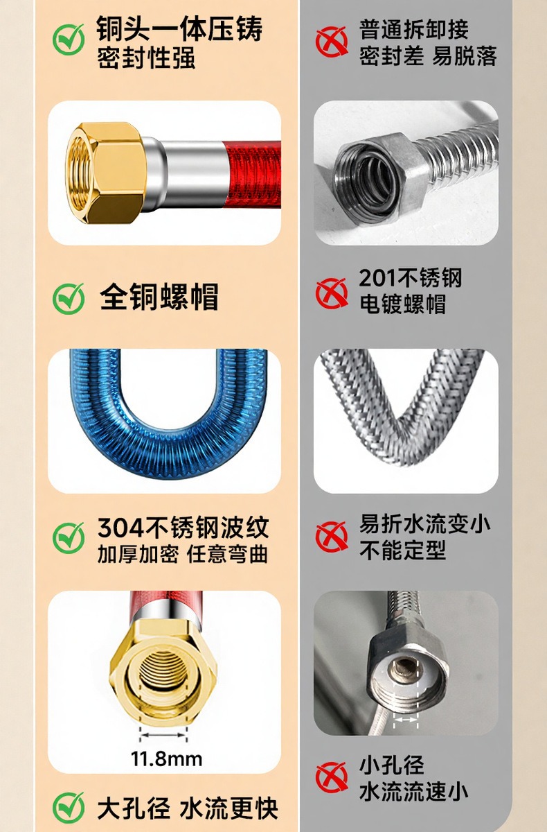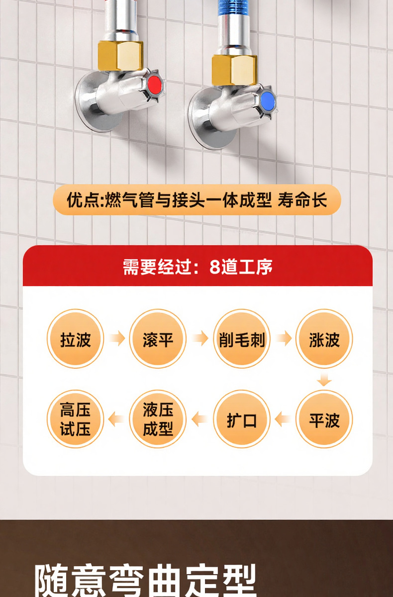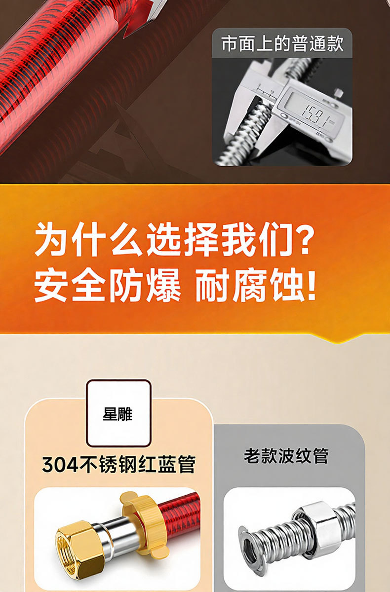 304 нержавеющая сталь гофрированная труба, шланг для горячей и холодной воды, газовый электрический водонагреватель, 4-точечная универсальная металлическая взрывозащищенная труба