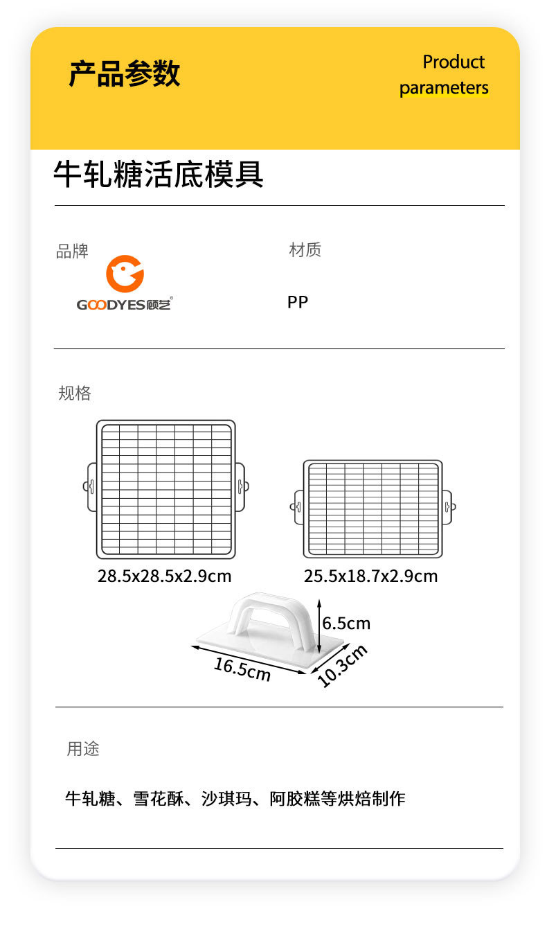 ![]() | Enlarged flattener [suitable for nougat/snowflake cake/ajiao cake, etc.] | ¥4.5 / ≈ 55 ₽ | 4999 | 6147361395286 | |