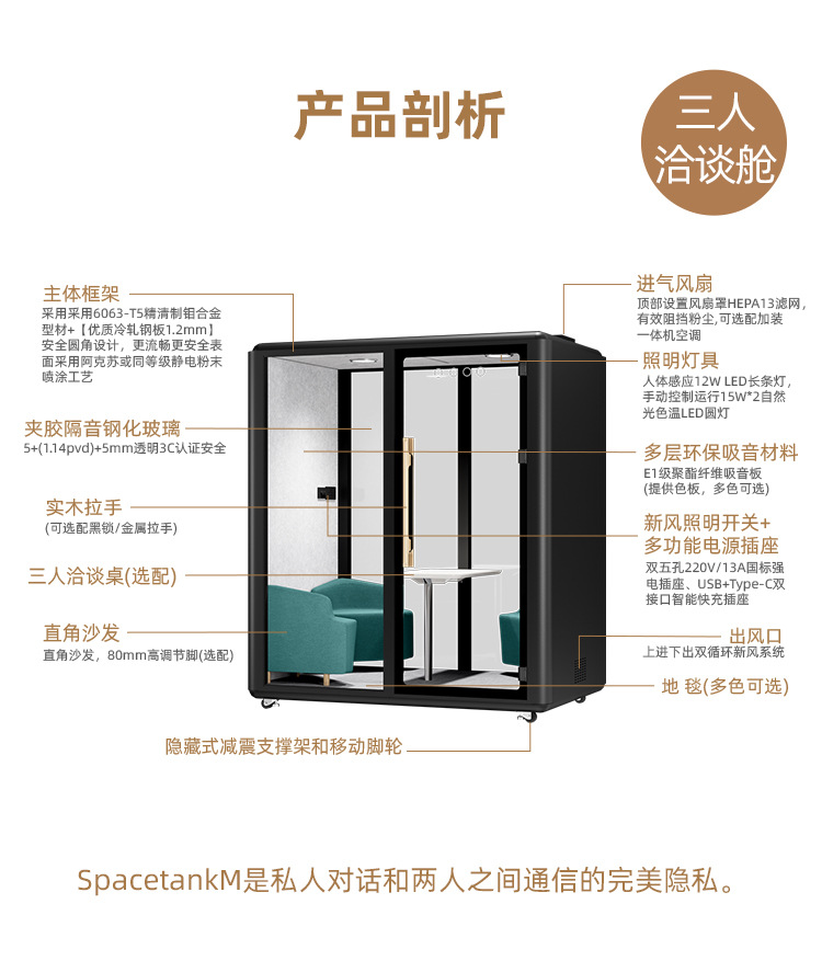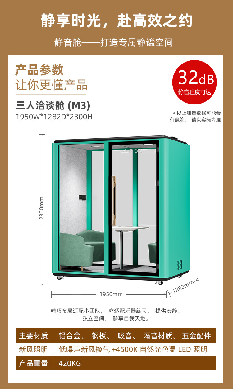 Внутренняя мобильная звукоизолированная кабина для трех человек, переговорная, офис, комната для прямых трансляций, завод, тестирование продуктов, звукоизолированная комната, тишина