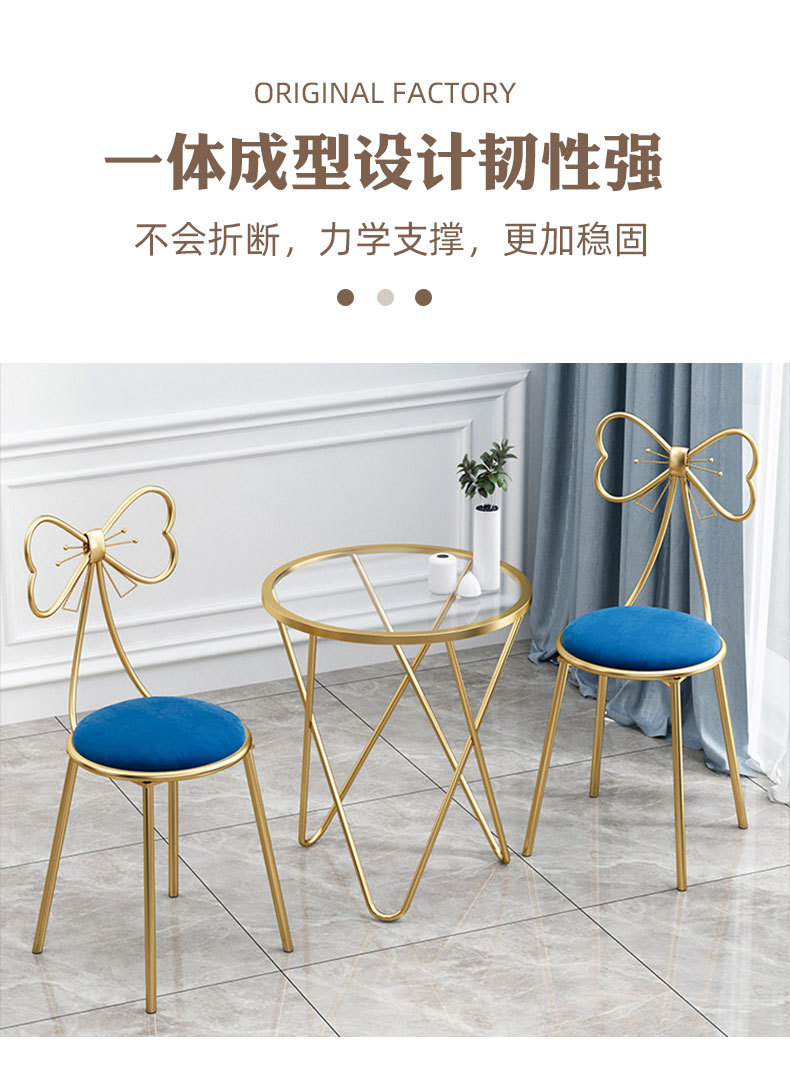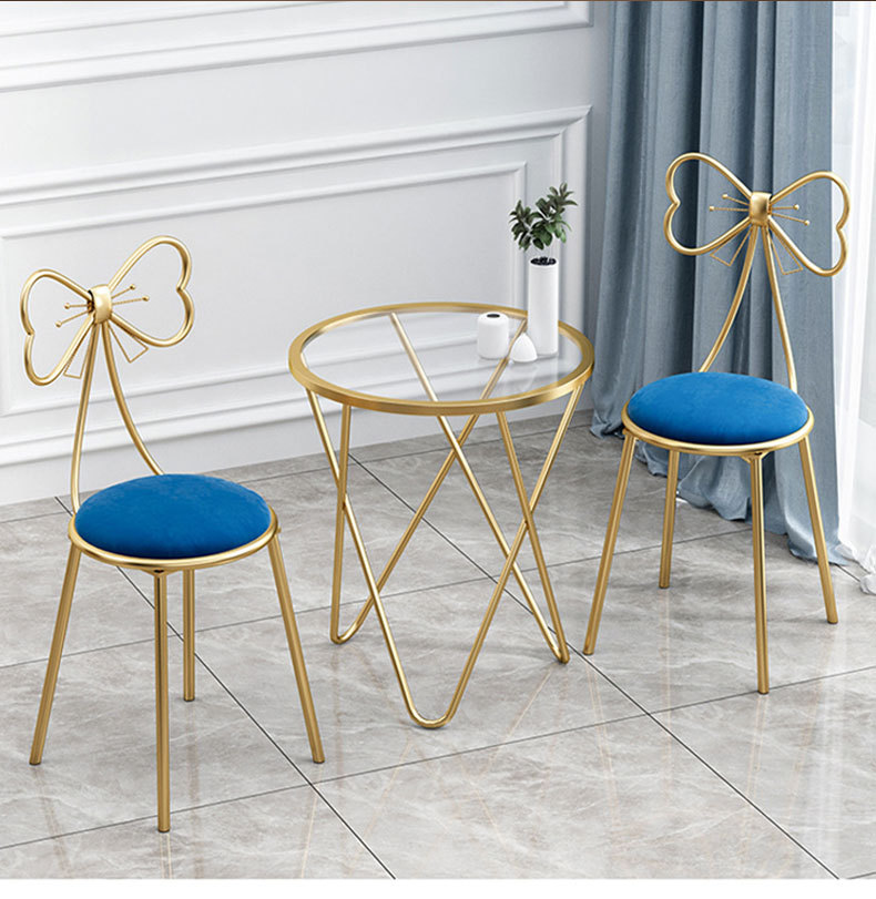 Макияжный стул для домашнего использования, спальни, гардеробной, с бантом, металлический маникюрный стул, удобный стул с подлокотниками, легкий роскошный стул