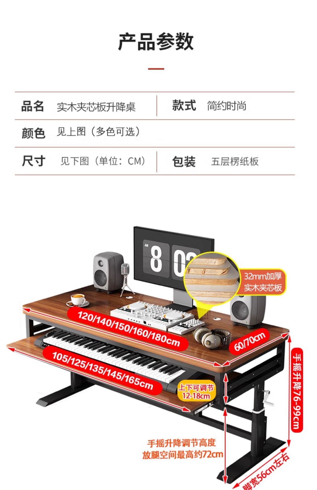 Регулируемый стол для аранжировщика из массива, стол для цифрового пиано, миди-клавиатуры, студийного гуцина, регулируемый компьютерный стол