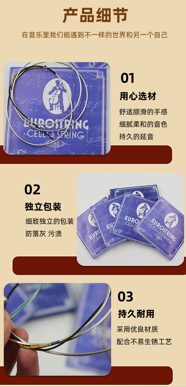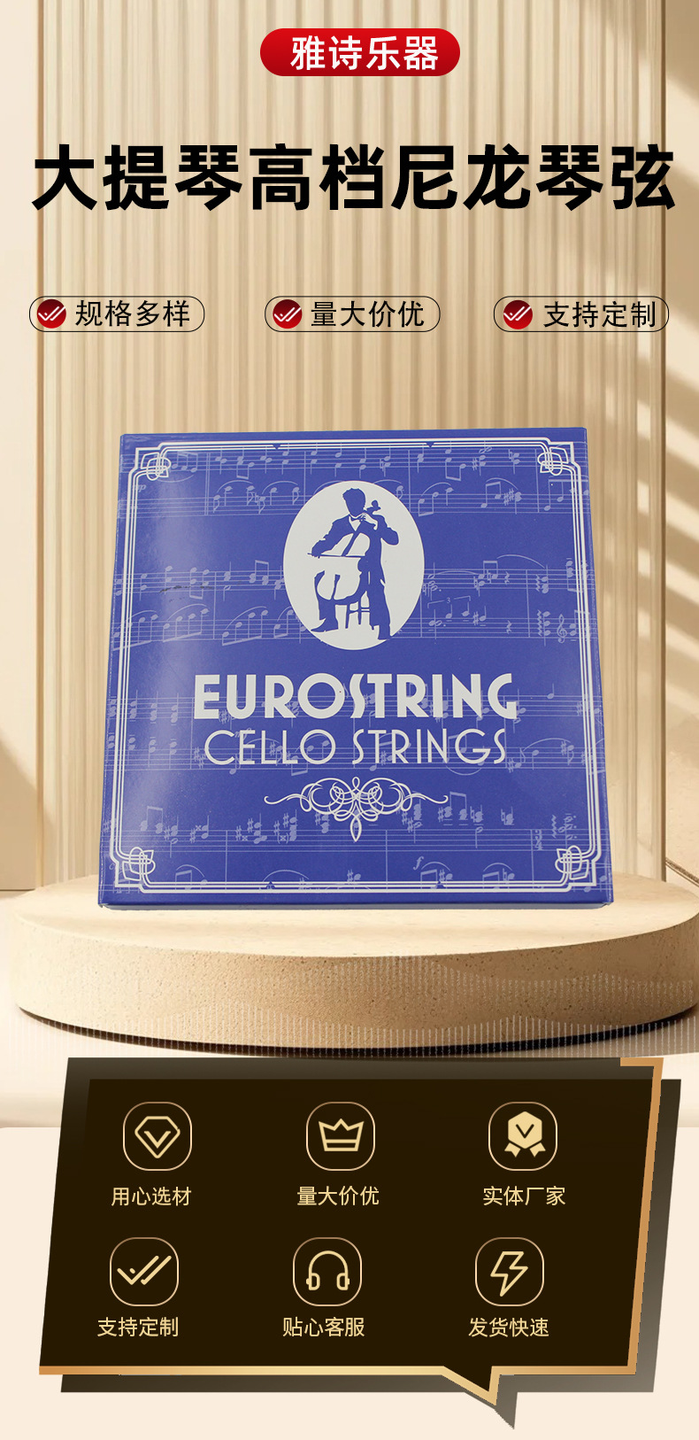 Струны для виолончели высокого класса, нейлон, индивидуальная упаковка