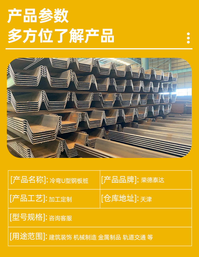 Горячекатаные U-образные колонны из стали для обработки стальных свай, поддержка холодного изгиба на строительных площадках и специальные стальные сваи