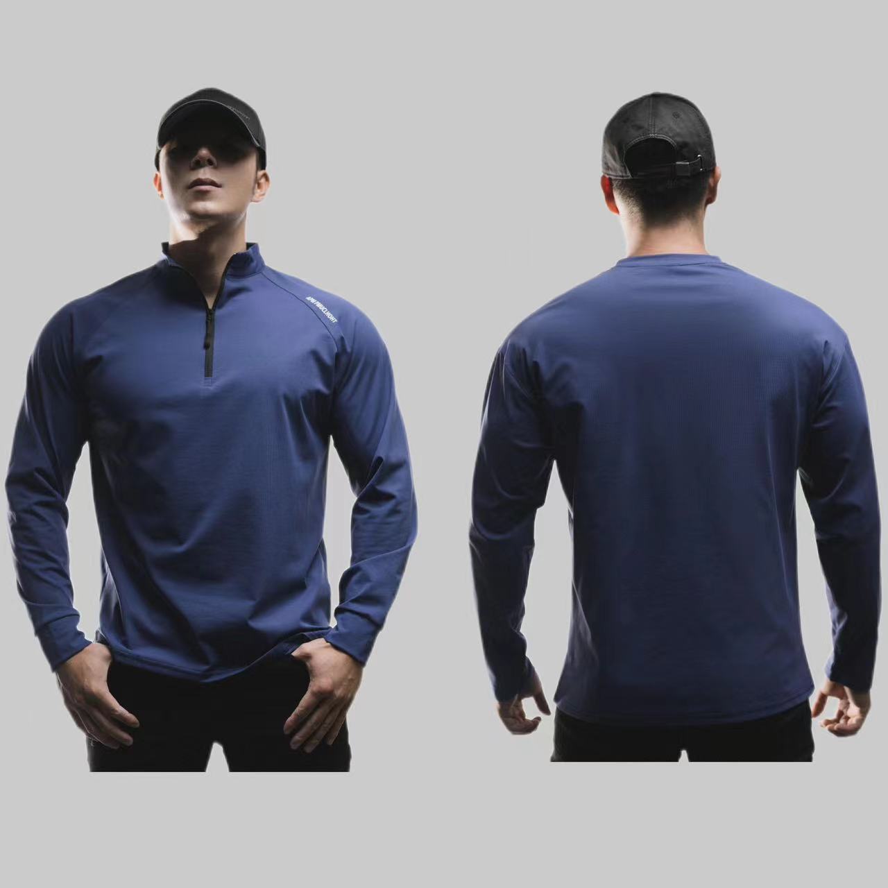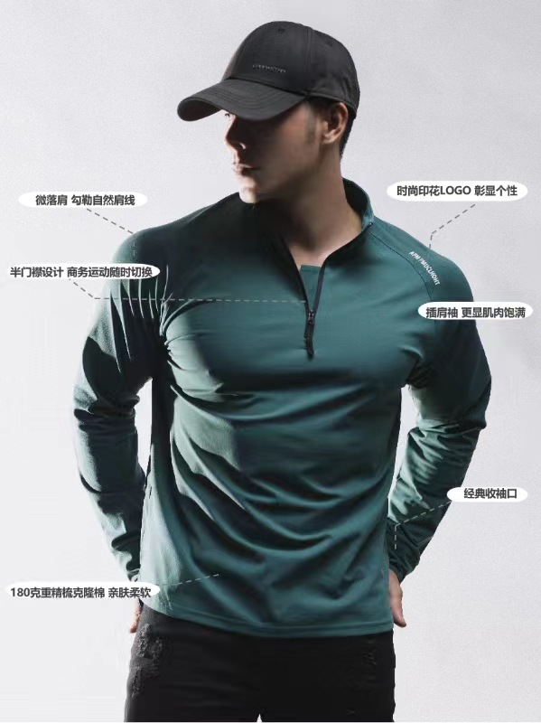 Мужская фитнес футболка из софтшелла с половинной застежкой, эластичные спортивные леггинсы, быстросохнущие длинные рукава
