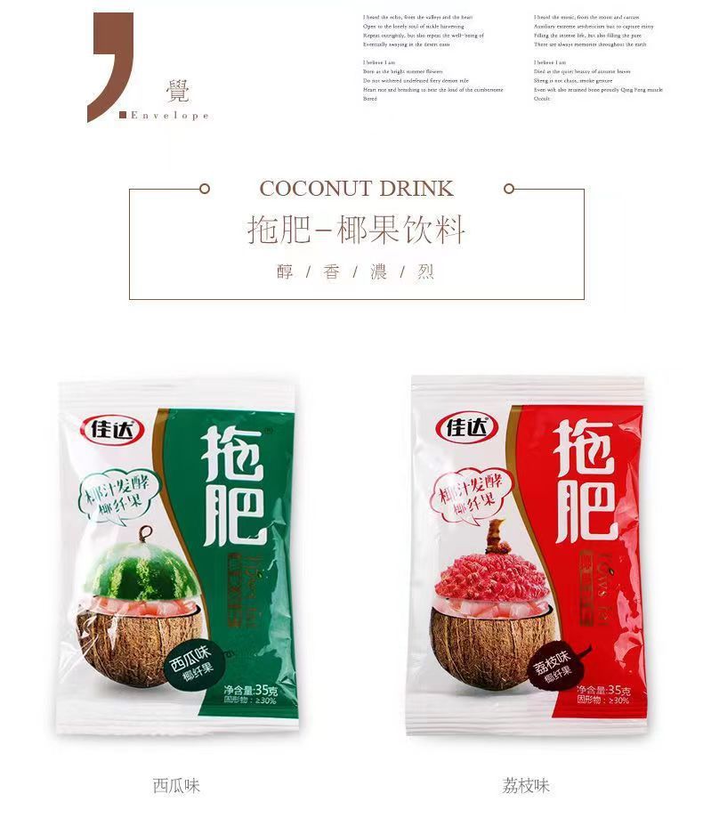 Кокосовое молоко с ферментированным кокосовым волокном Jiada, фрукт (случайный вкус) около 35Г/пакет