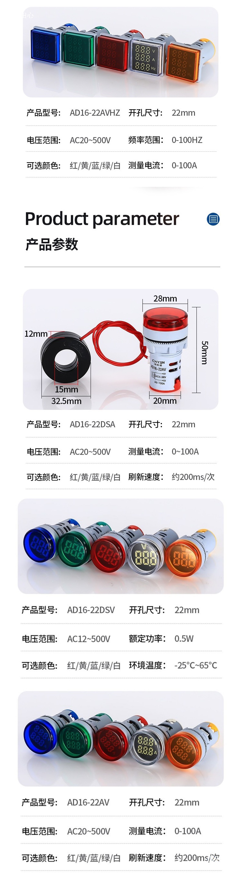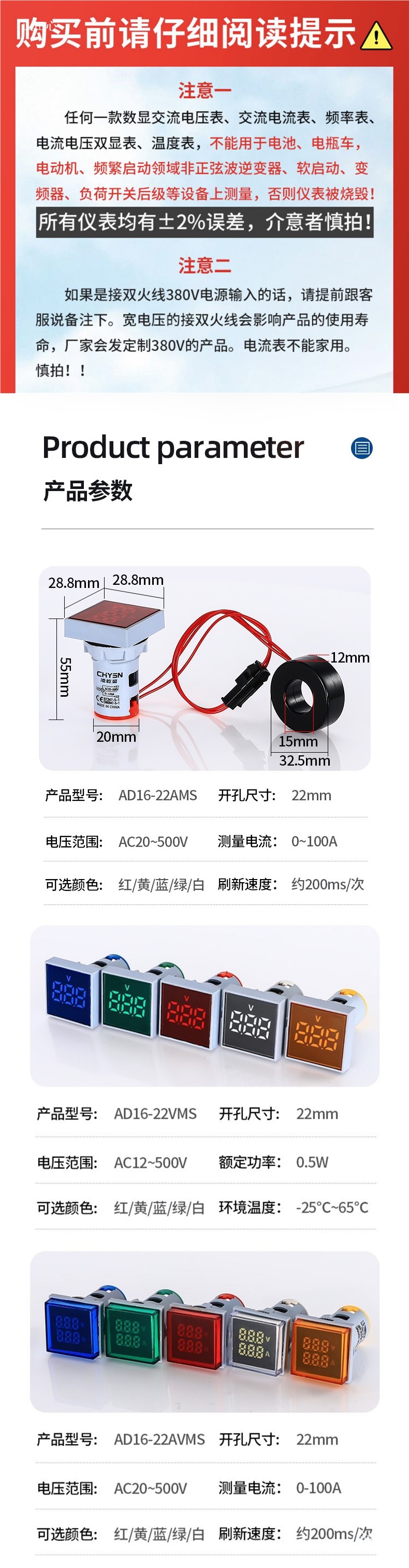 ![]() | Square-red-ac voltmeter indicator | ¥6.0 / ≈ 72 ₽ | 200 | 6148858654701 | |