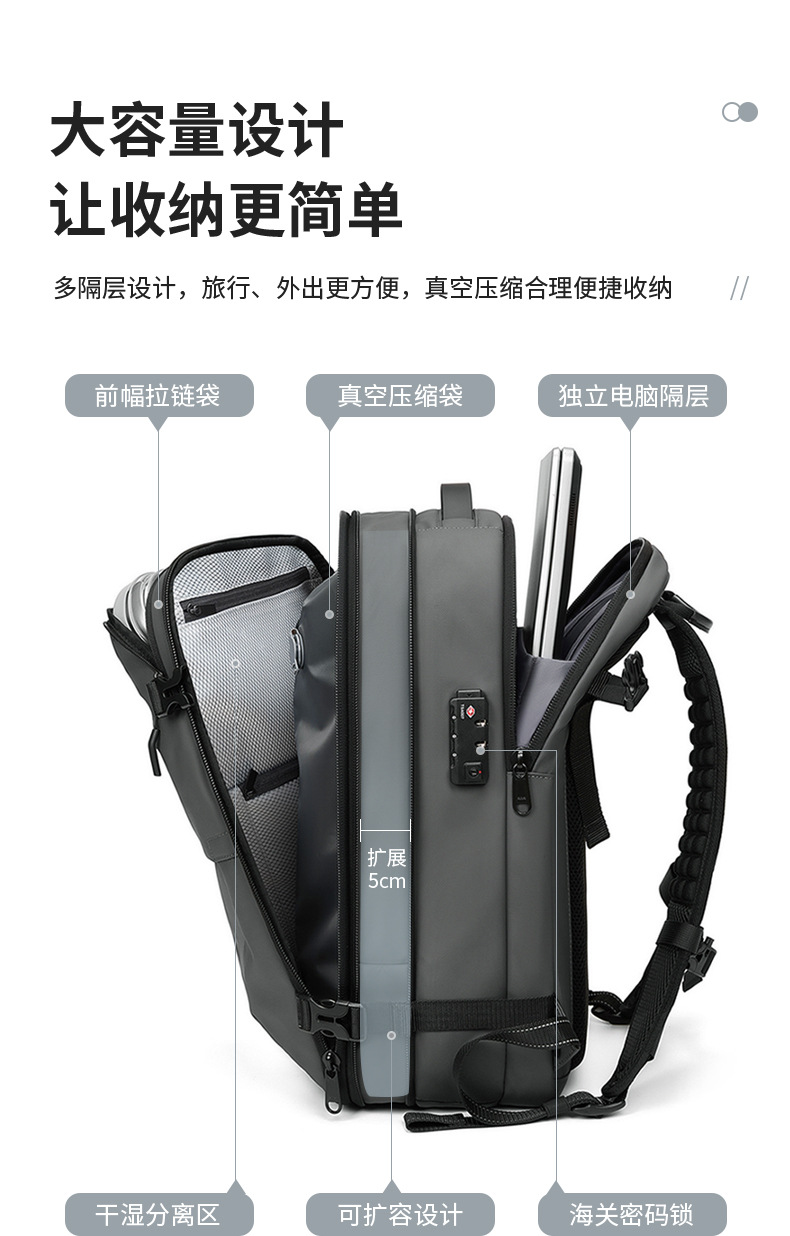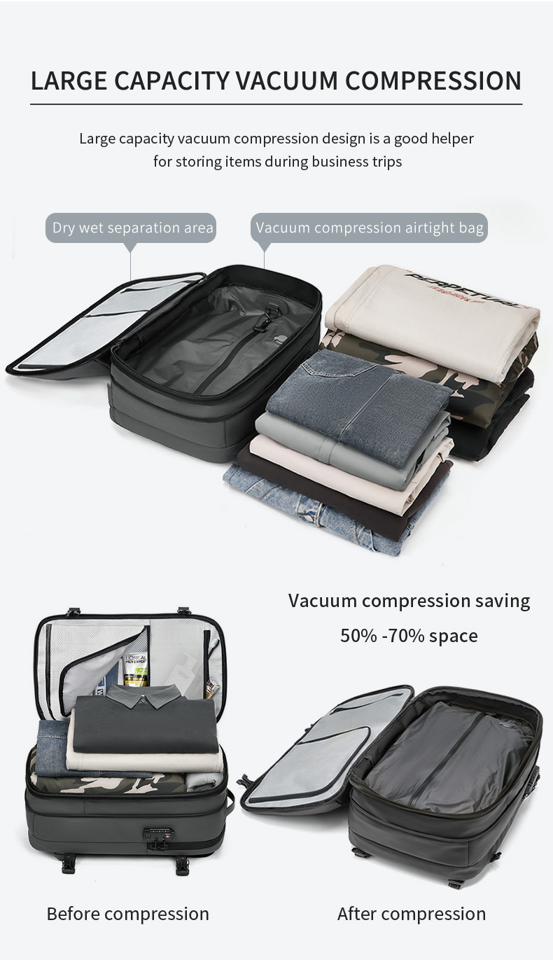 Вакуумный компрессионный рюкзак для мужчин, большой объем, для разделения сухих и влажных вещей, расширяемый многофункциональный рюкзак для деловых поездок